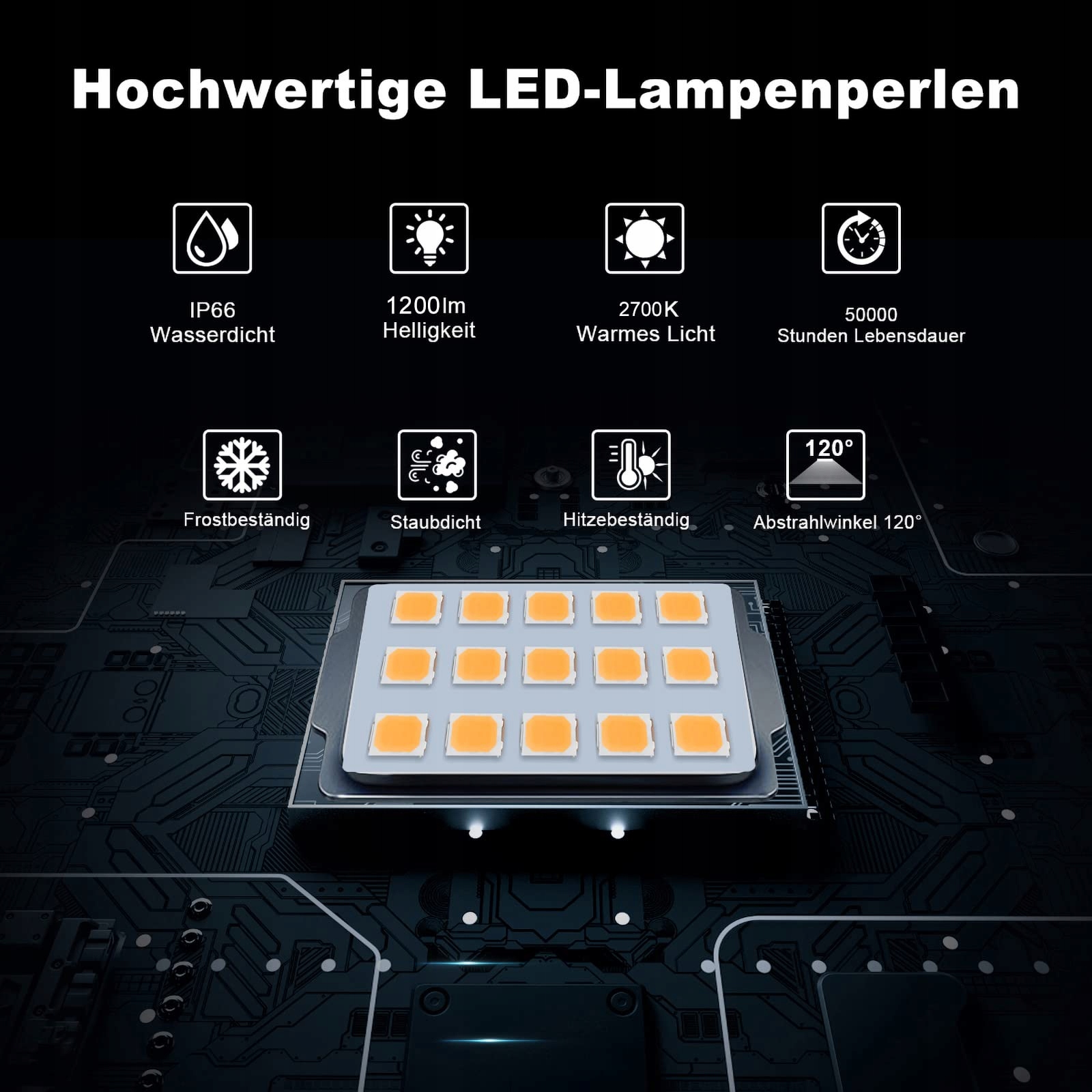 Efektywne odprowadzanie ciepła, trwałość: Ramka przednia MEIKEE LED reflektora zewnętrznego wykorzystuje zaawansowane nanomateriały zamiast szkła, które są odporne na uderzenia, upadki i zarysowania, chroniąc reflektor LED przed wyładowaniami atmosferycznymi i wilgocią. Unikalna obudowa z tyłu reflektora zapewnia idealne warunki do odprowadzania ciepła, chroniąc wnętrze lampy przed przegrzaniem i wydłużając żywotność reflektora.