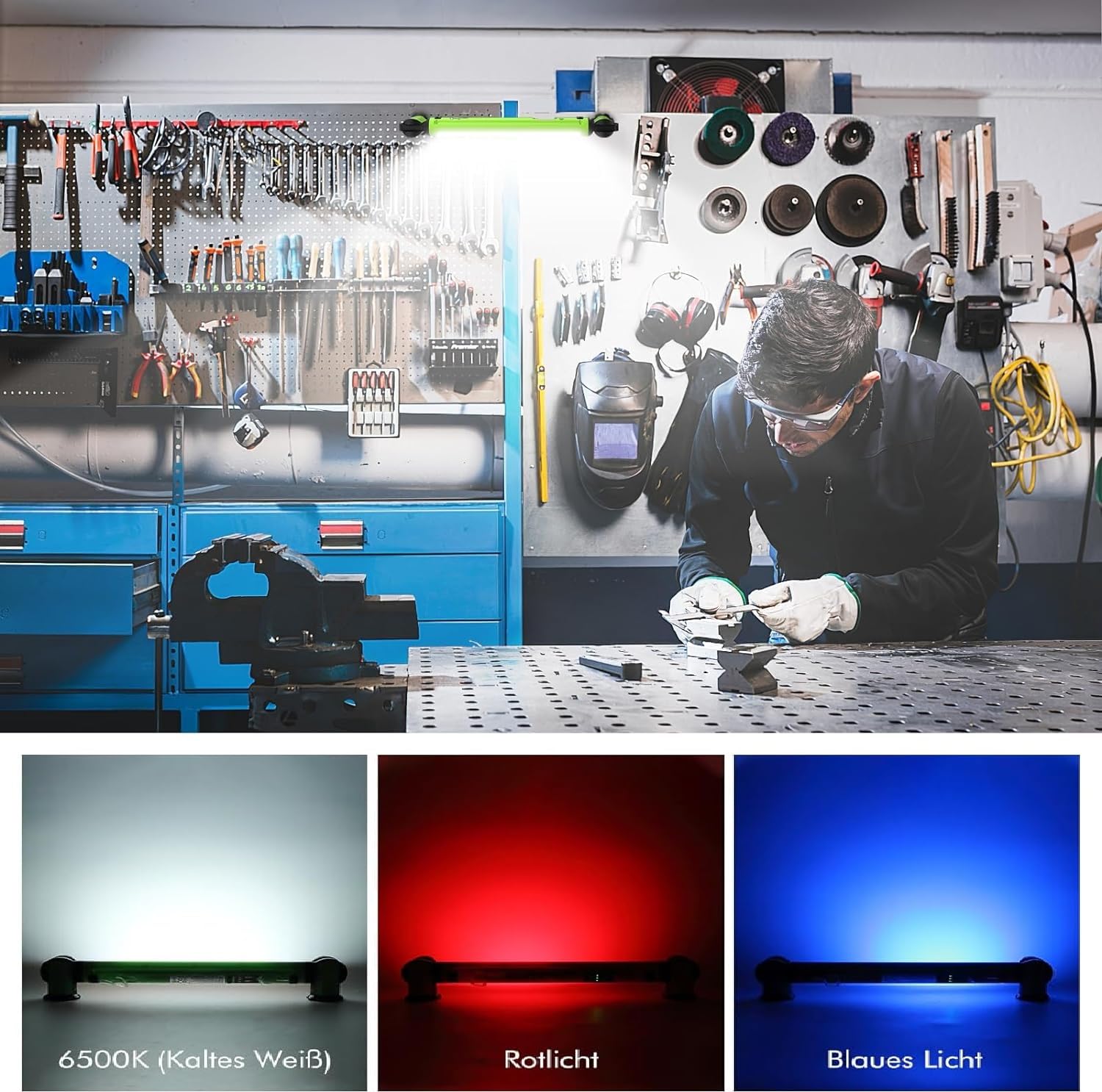 [Wielofunkcyjna lampa warsztatowa]Zaprojektowana z mocnymi magnesami na obu końcach, idealna do mocowania pod maską silnika lub na powierzchniach metalowych (nie przyczepia się do aluminium), dzięki czemu możesz pracować bez użycia rąk. Reflektor budowlany jest elastyczny, obraca się o 360 stopni i 180 stopni, możesz łatwo skierować światło dokładnie tam, gdzie go potrzebujesz. Dwa obrotowe haki oferują elastyczne możliwości zawieszenia i mieszczą się w rowkach na tylnej stronie, gdy nie są używane.