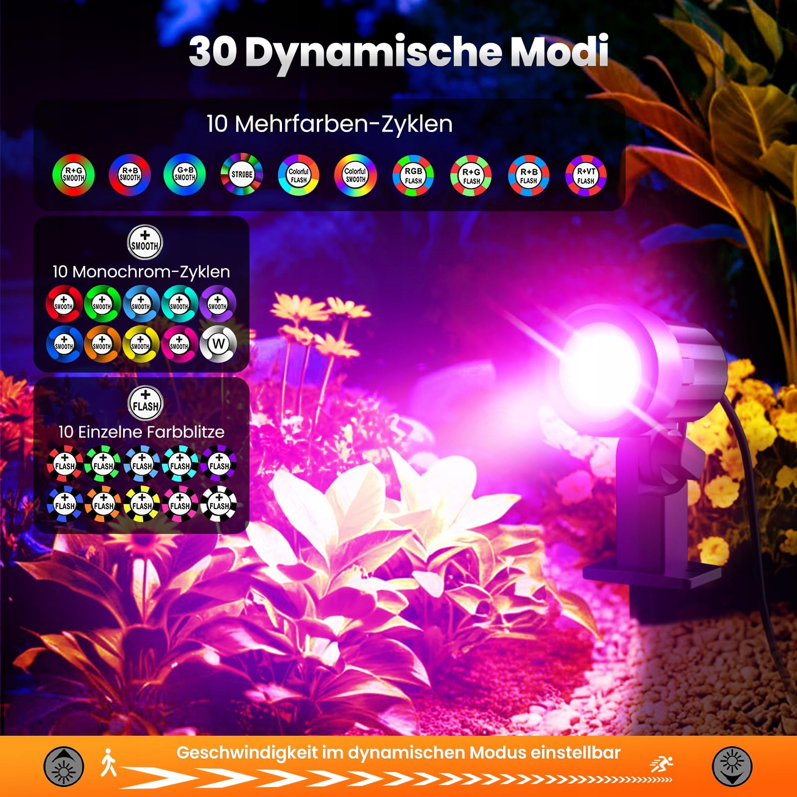 【10 zmieniających się kolorów, 30 dynamicznych trybów, 2 poziomy jasności】Reflektor RGB MEIKEE oferuje 10 kolorów do wyboru. 2 poziomy jasności można łatwo dostosować do Twoich potrzeb. Unikalne 30 trybów cyklu wprowadza wyjątkową atmosferę radości do Twojego domu. Reflektory ogrodowe RGB MEIKEE spełniają Twoje potrzeby oświetleniowe w różnych scenach, takich jak wesołe imprezy, dynamiczne DJ-e, ciepłe kolacje itd.! Uwaga: 8 świateł nie może być ustawionych na różne kolory, kolory świateł są takie same