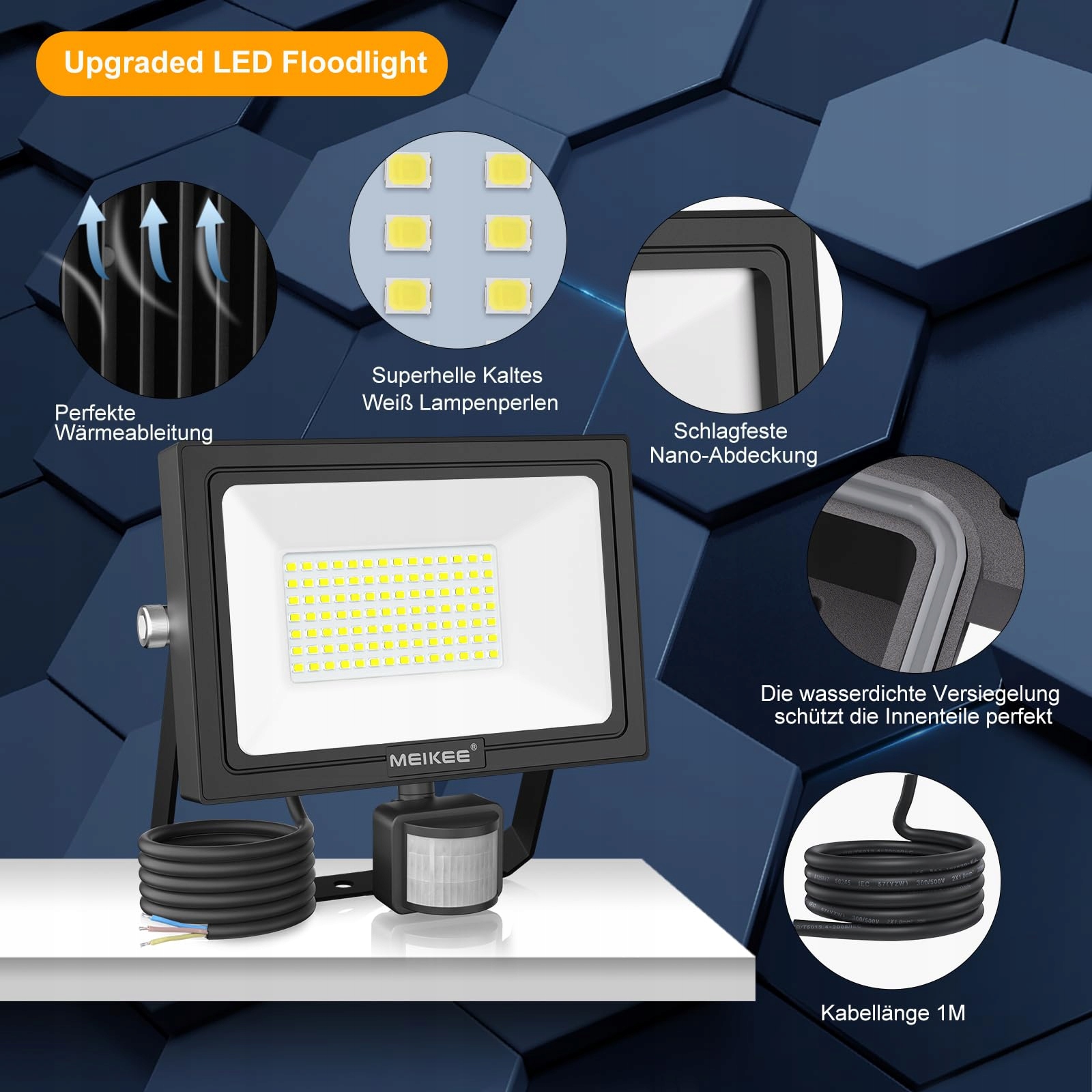 MEIKEE Reflektor LED 80W 8000 LM Z Czujnikiem Ruchu Zewnętrzny IP66 | Premium Supply