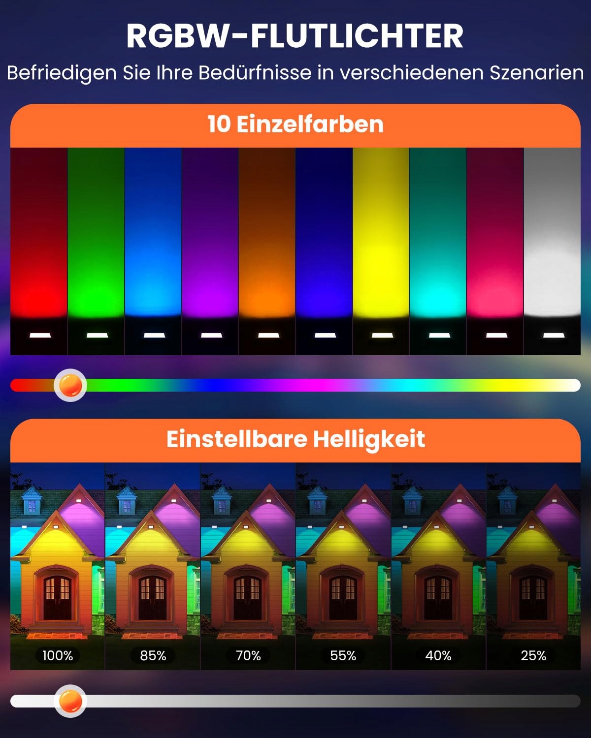 MEIKEE 25W RGB Reflektor z Pilotem 30 Trybów 10 Kolorów Funkcja Pamięci RGB Floodlight IP66 Wodoodporny 6 Poziomów Jasności Bar Impreza Disco Święta Scena Domy Halloween 2SZT