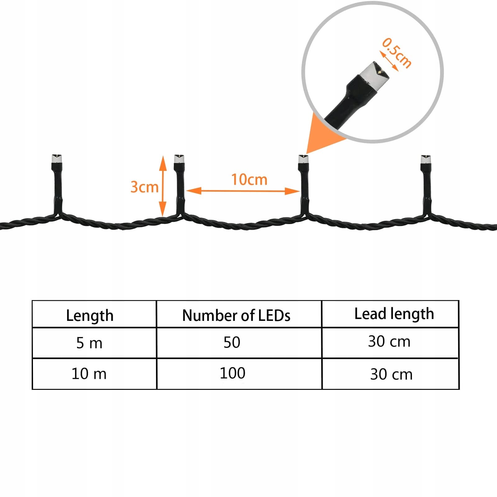 CIEMNOZIELONE KABLE: Ciemnozielone kable lepiej integrują się z nocą lub choinką, wysokiej jakości kable są odporne na warunki atmosferyczne i mają dłuższą żywotność.
