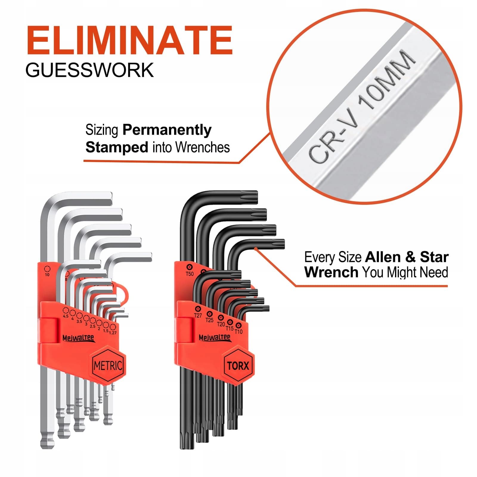MEIWALTEE Zestaw Kluczy Imbusowych 22 Części Torx Długi Cr-V Stal | Premium Supply