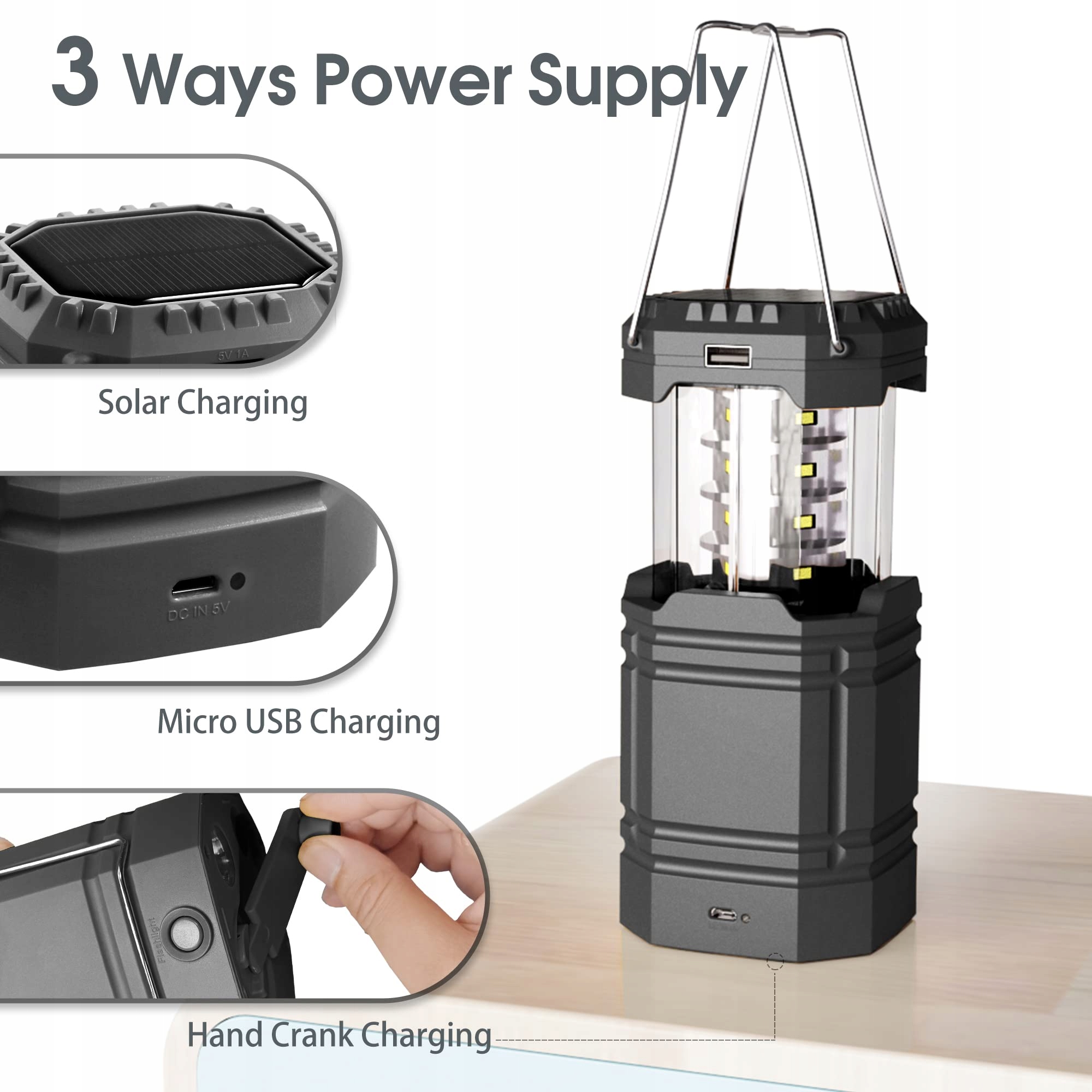 💡【3 możliwości ładowania】Nasza latarka kempingowa LED posiada wbudowany akumulator 3000 mAh i oferuje 3 tryby zasilania - dołączony kabel ładujący Micro-USB, panel solarny lub kręcenie ręczną korbką u dołu, aby wytworzyć energię. Wiele opcji ładowania zapewnia różne scenariusze użytkowania.