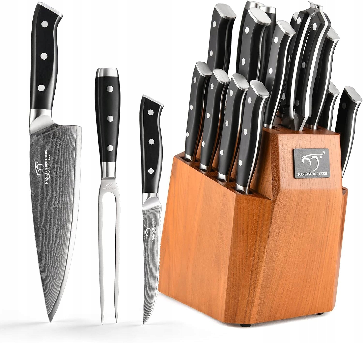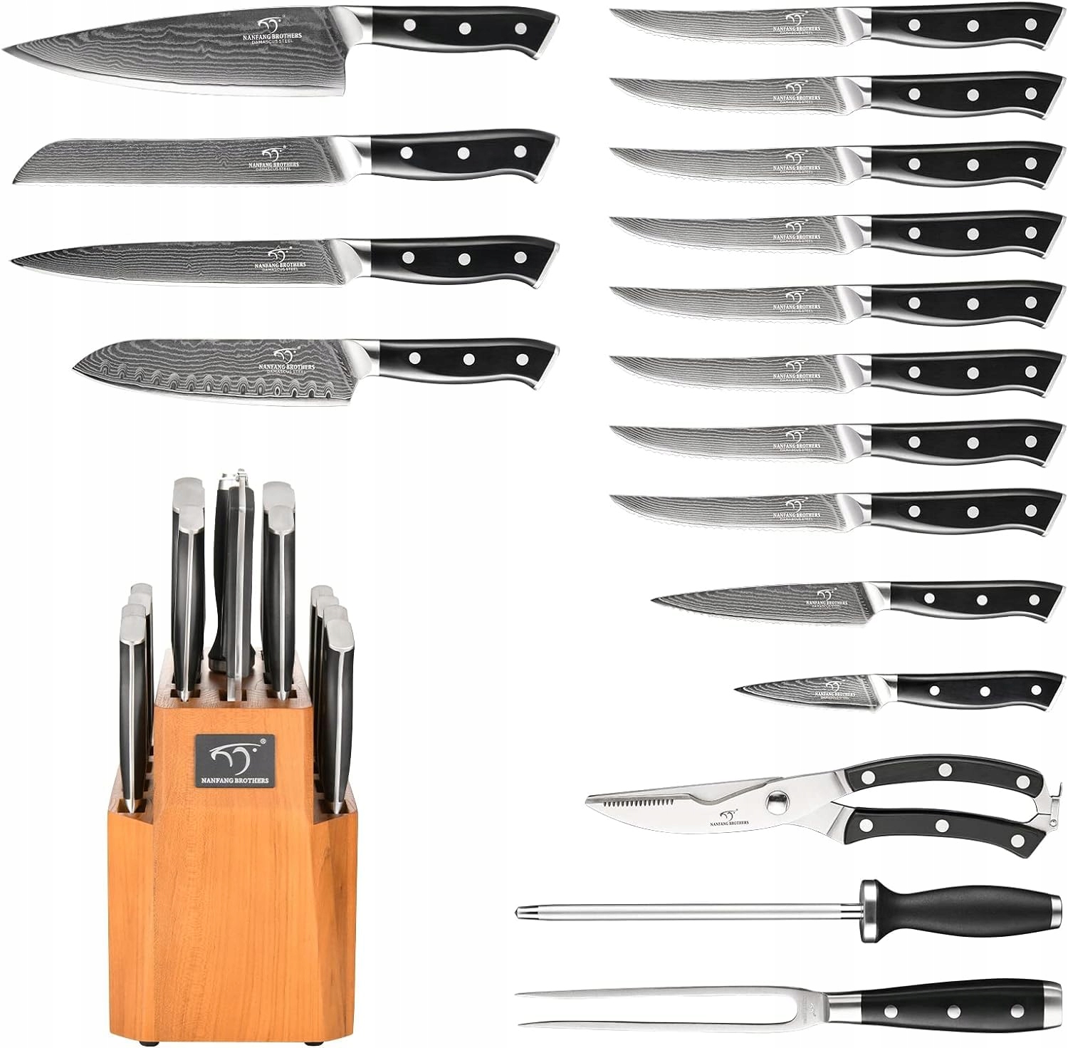 MESSERSETS Zestaw Noży Kuchennych Damast 18 Sztuk Z Blokiem Profesjonalny