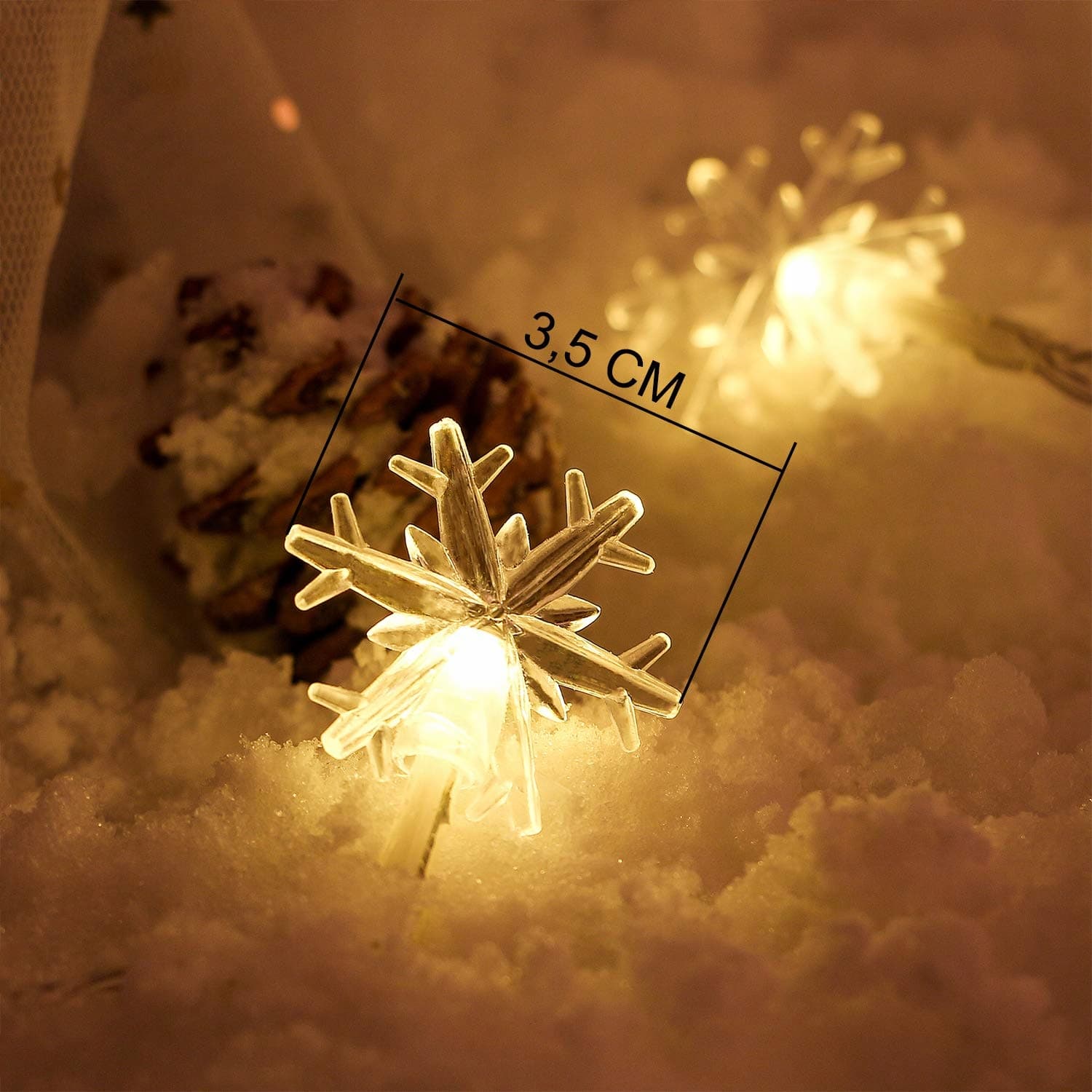 METAKU Świąteczne Lampki LED Płatki Śniegu 6M 40LED Ciepłe Białe Z Pilotem | Premium Supply