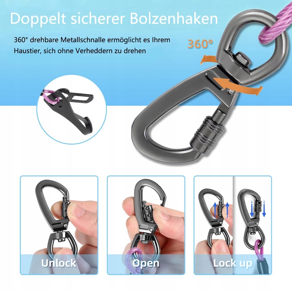 [Podwójnie bezpieczny hak śrubowy] Pas bezpieczeństwa dla psa do samochodu z obrotowym o 360° podwójnym bezpiecznym hakiem śrubowym wykonany jest z pogrubionej stopu cynku. Dzięki smyczy dla zwierząt, Twoje zwierzę może swobodnie się poruszać, jednocześnie otrzymując podwójną ochronę bezpieczeństwa, aby uniknąć oddzielenia zwierzęcia od smyczy.