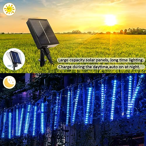 Światła deszczu meteorytów solarnych Micacorn, 10 rur 240 LED meteorów świątecznych z pilotem, światła kropli deszczu, wodoodporne łańcuchy świetlne na imprezę, wesele, choinkę, dekoracje świąteczne