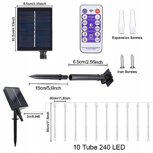 【Wysokiej jakości spadające światła deszczowe】30 cm 10 rur x 24 LED. Odległość między lampami wynosi 30 cm/11,8 cala. Długość rury: 11,8 cala/30 cm. Długość przewodu: 9,84 FT/3 m. Wykonane z wysokiej jakości PVC, te łańcuchy są odporne na kurz, korozję i trwałe.