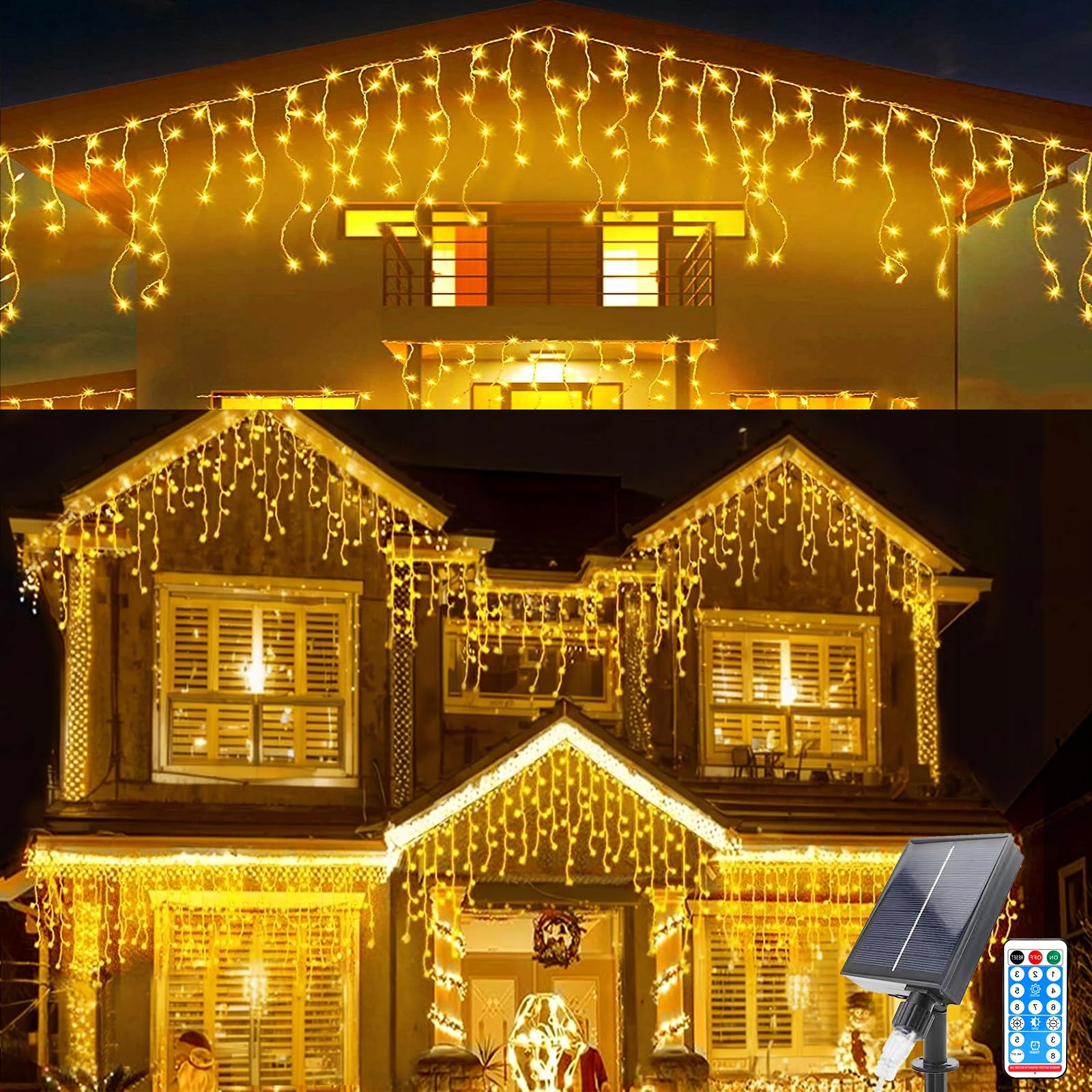 Kurtyna świetlna solarna na zewnątrz, 8M wodoodporne światła kurtynowe, 44 sztuki solarne lampki łańcuchowe 8 trybów 264 LED lampki kurtynowe z pilotem do dekoracji ogrodu, balkonu, ślubu, Bożego Narodzenia