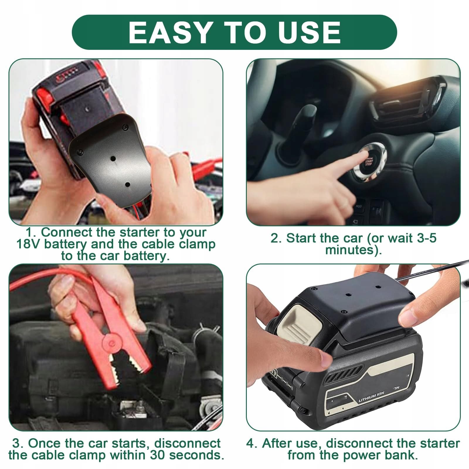 🔋【Kompatybilny z akumulatorami Makita 18V】Ten adapter rozruchowy jest idealnie kompatybilny z litowymi akumulatorami Makita 18V z serii BL1815N, BL1820B, BL1830B, BL1840B, BL1850B, BL1860B itd. (BL1815G i BL1415G nie są kompatybilne) (⚠️Akumulator nie jest dołączony).