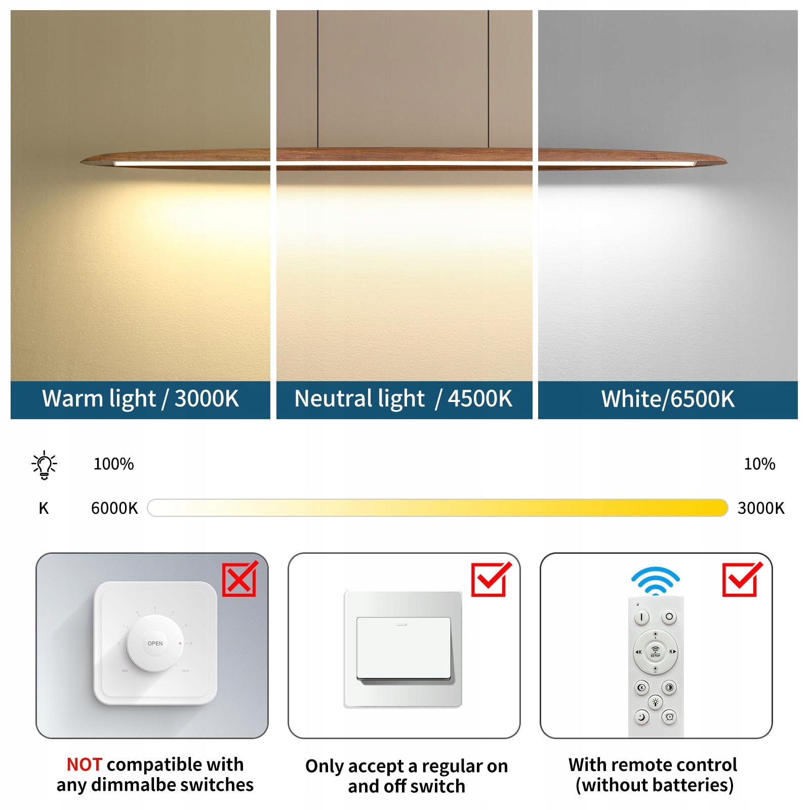 【Energooszczędne źródło światła LED】Ściemnialny liniowy żyrandol można regulować pod względem koloru i jasności za pomocą pilota. Możesz użyć pilota, aby wybrać kolor i jasność, aby stworzyć atmosferę, którą lubisz. Temperatura barwowa tego ściemnialnego liniowego żyrandola wynosi 3000-6000K, możesz łatwo dostosować pożądaną jasność i zakres temperatury barwowej (5%-100%), nowy model jest o 30% bardziej energooszczędny niż inne żyrandole!