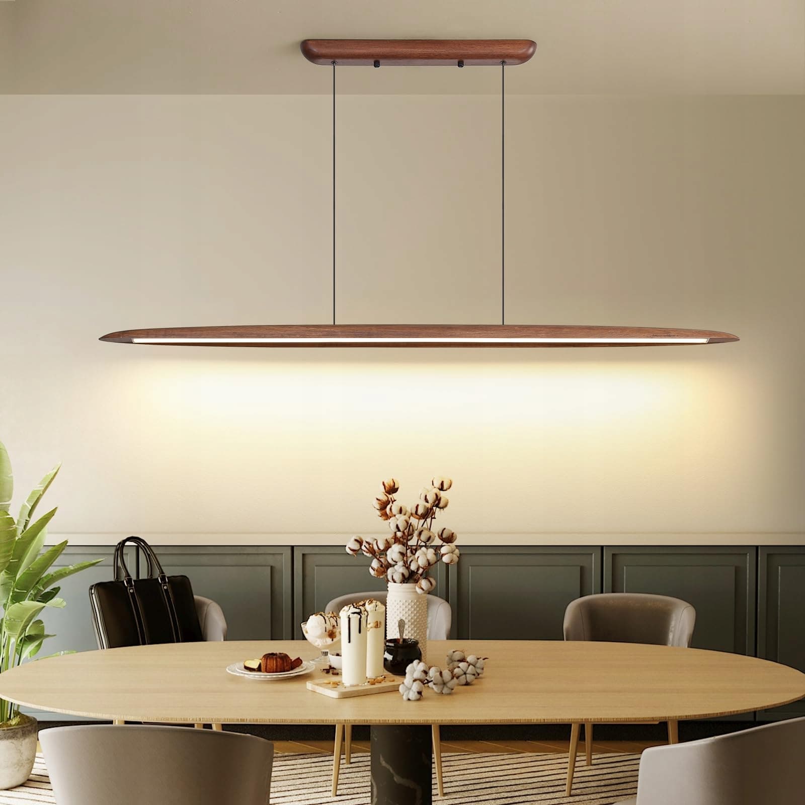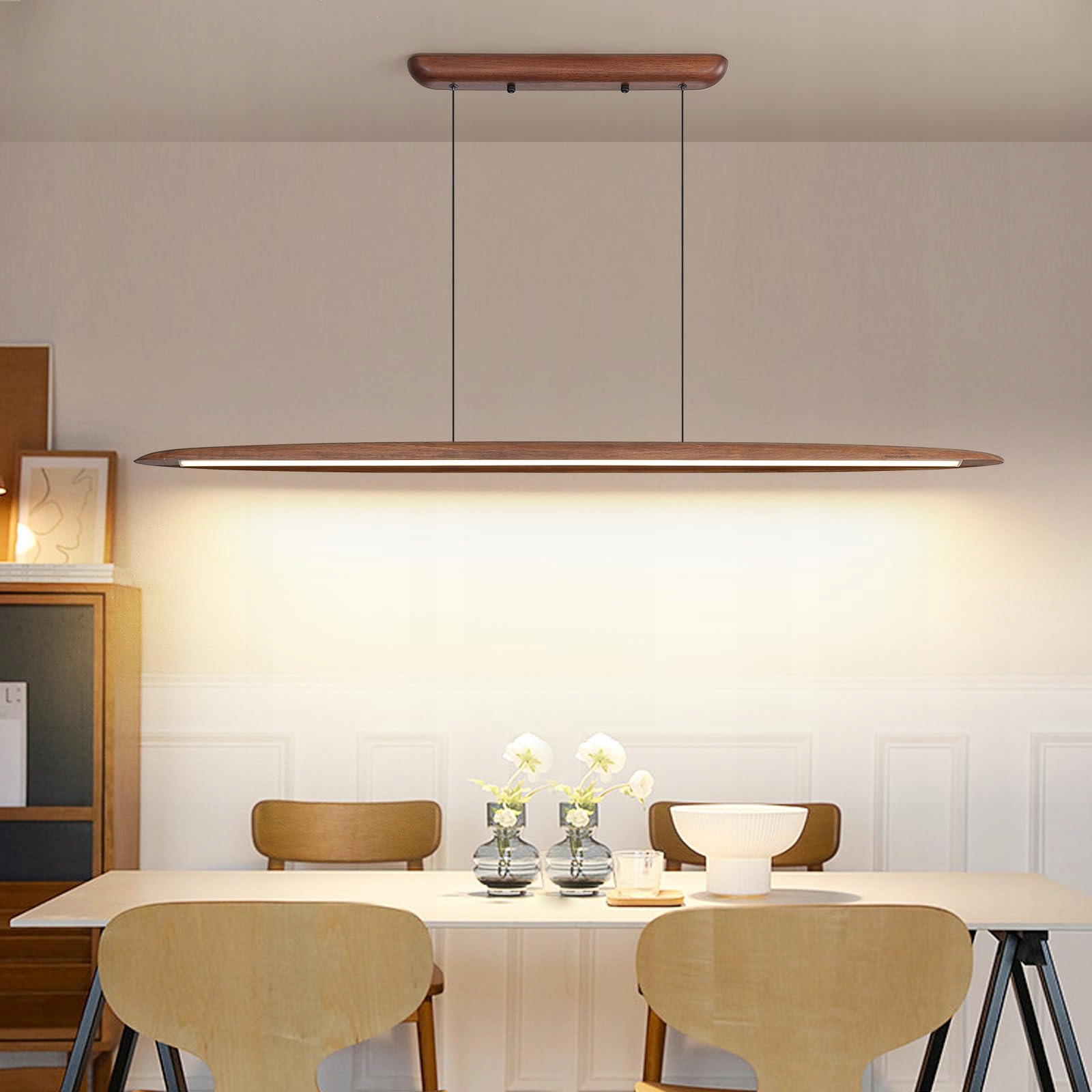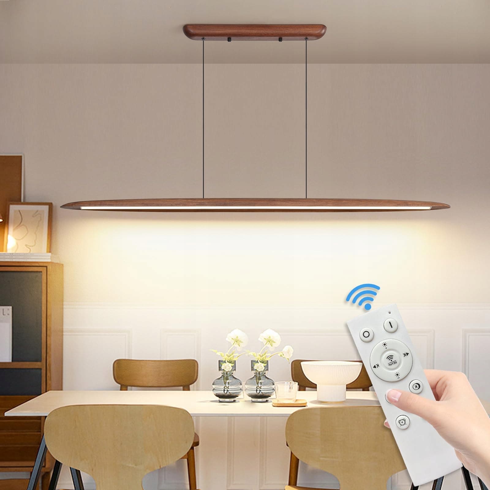 MIKERU Drewniana Lampa Wisząca LED 130CM Regulowana 3000-6500K Do Kuchni | Premium Supply