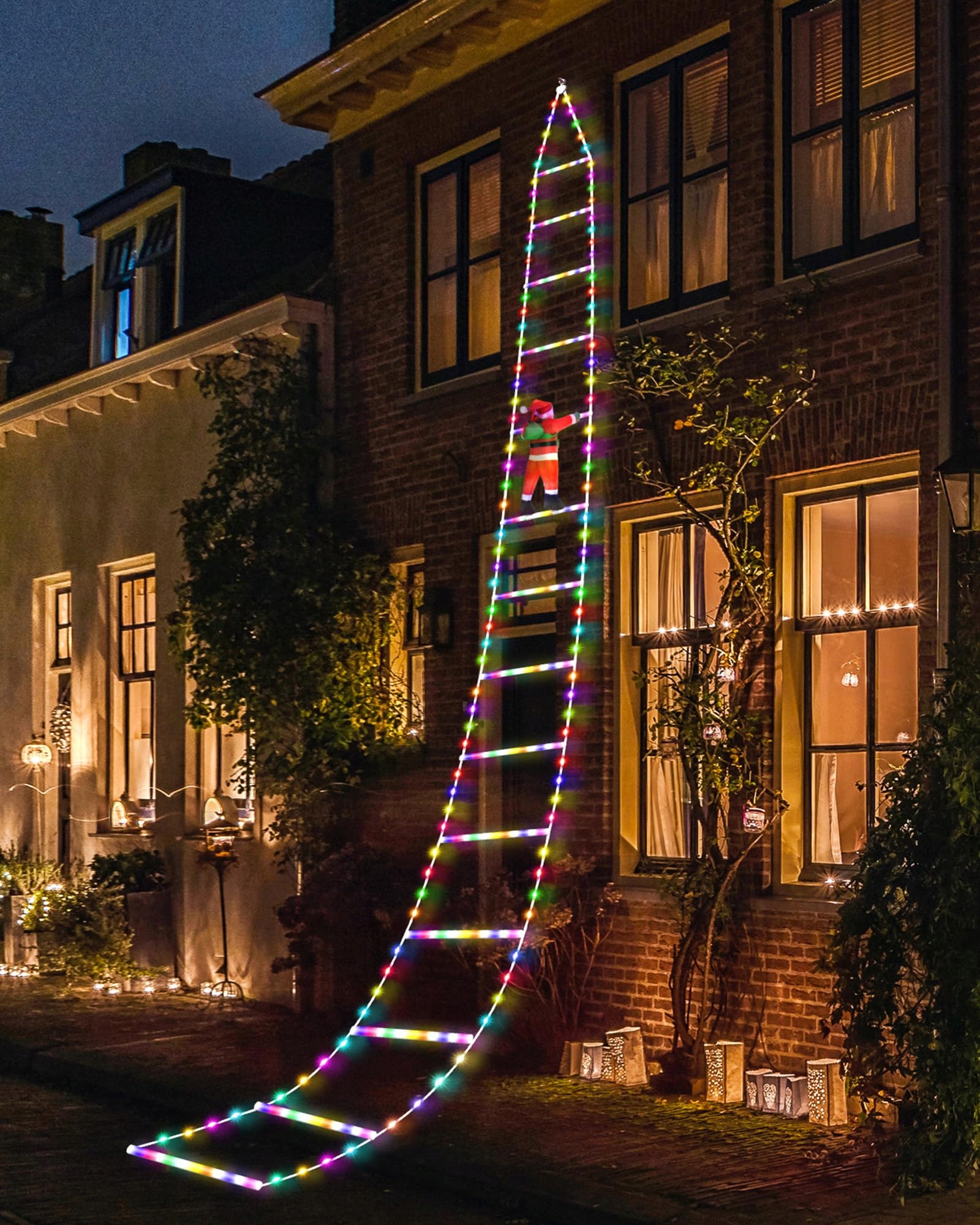 MILFECH Dekoracja Świetlna Świąteczna Drabina Z Mikołajem Lampki Rgb