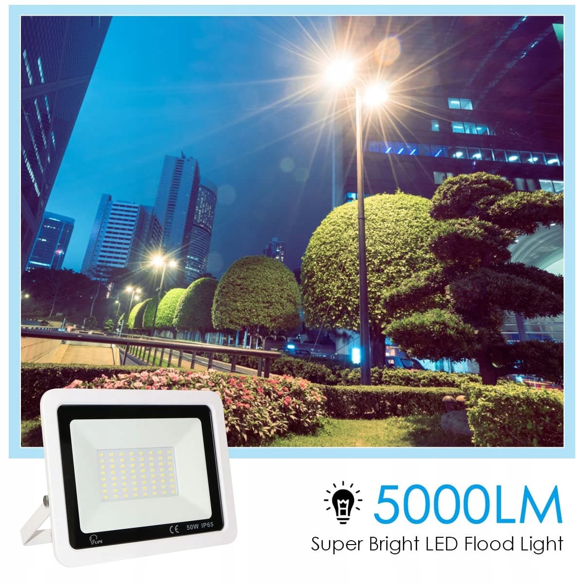 Super jasny i energooszczędny: LED reflektor zewnętrzny 50 W 5000 LM może zastąpić tradycyjne żarówki 400 W, z zaletami wysokiej jasności, wysokiej wydajności świetlnej, długiej żywotności itp., może zaoszczędzić do 80% energii