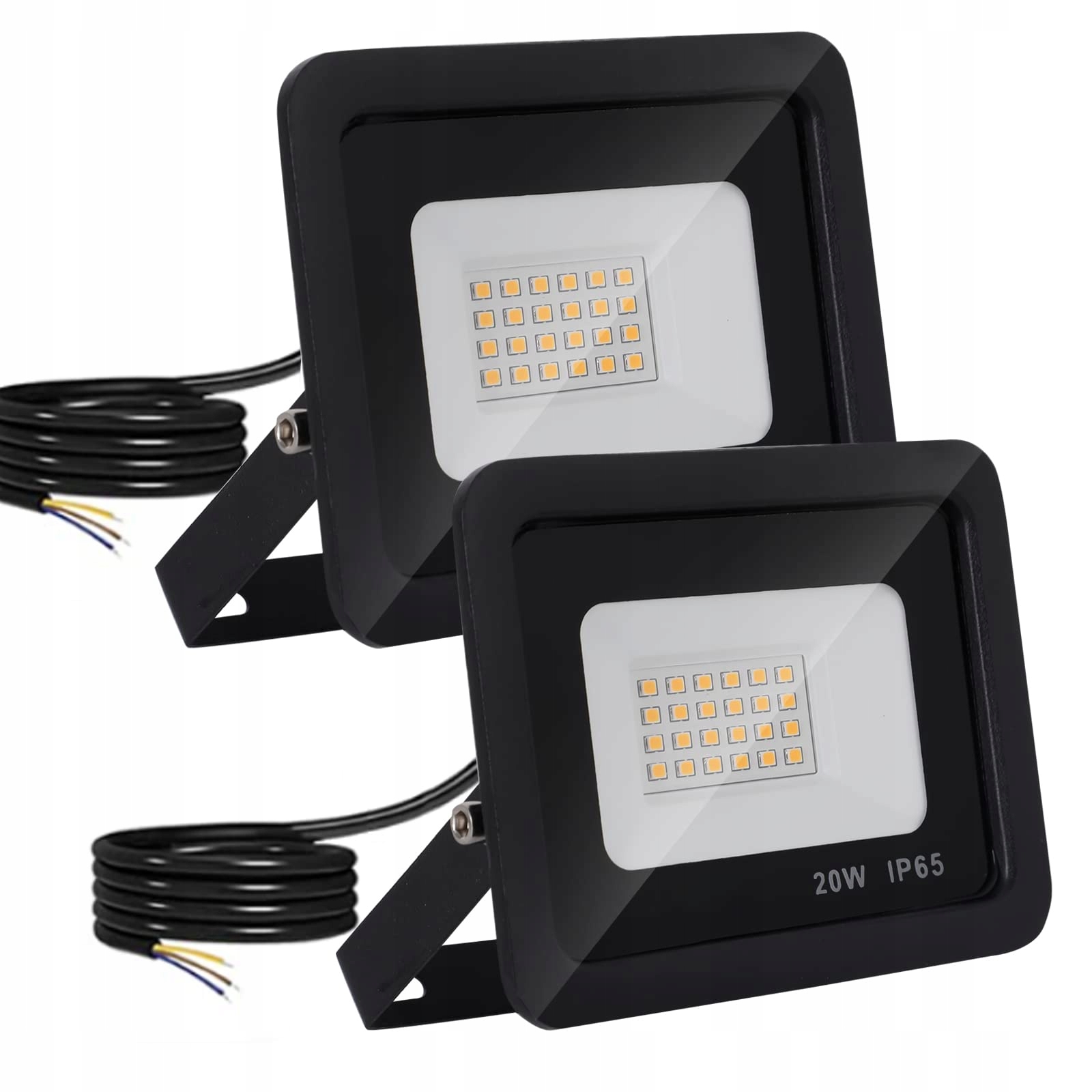 Mille Lucciole 2 sztuki 20W LED reflektor zewnętrzny, 2000LM super jasny reflektor zewnętrzny IP65 wodoodporny, naświetlacz 3000K ciepła biel, reflektor LED do podwórka, garażu, ogrodu, bez czujnika ruchu【czarny】