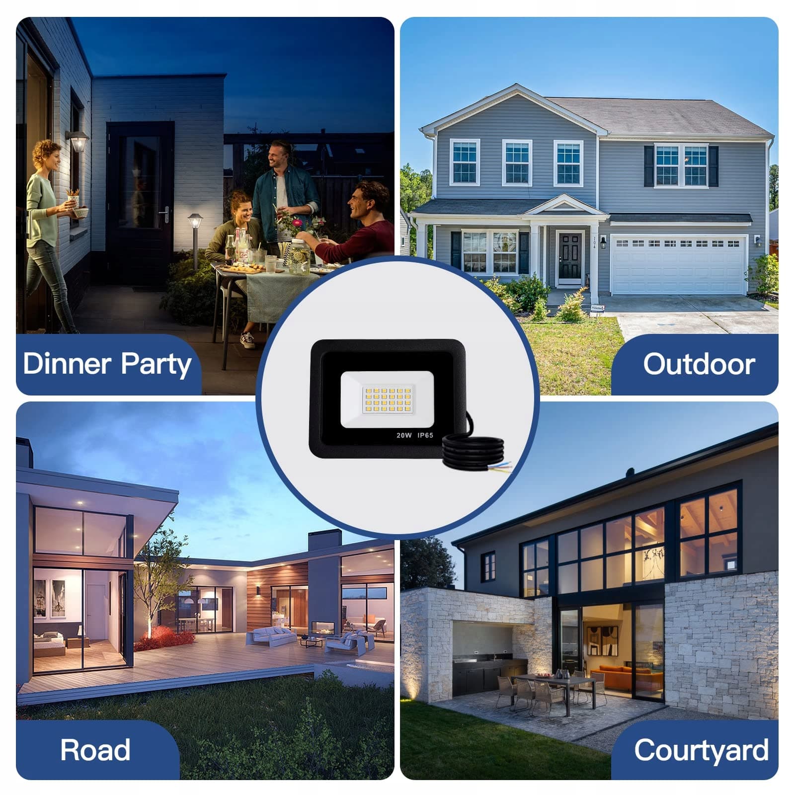 Super jasny i energooszczędny: LED reflektor zewnętrzny 20 W 2000 LM może zastąpić tradycyjne żarówki 200 W, z zaletami wysokiej jasności, wysokiej wydajności świetlnej, długiej żywotności itp., może zaoszczędzić do 80% energii