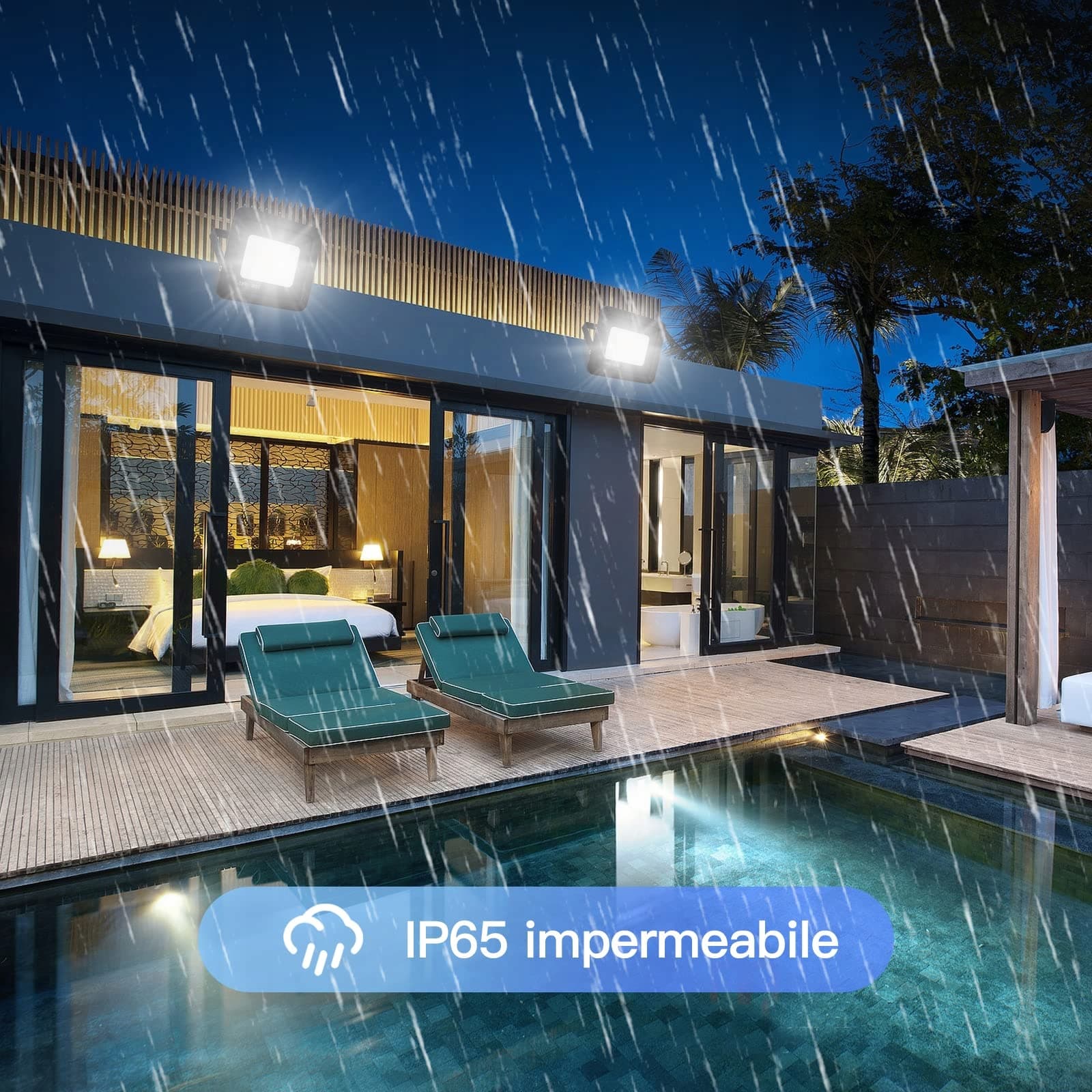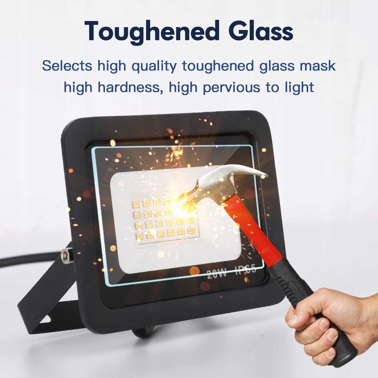 IP65 wodoodporny i trwały: LED reflektor wykonany z odlewu aluminiowego i hartowanego szkła, wbudowany silikonowy pierścień uszczelniający, wodoodporny i pyłoszczelny, całkowicie izolowany od kurzu i silnych strumieni wody, odporny na rdzę, powierzchnia poddana wysokiej jakości elektrostatycznej adsorpcji, odpowiedni do użytku na zewnątrz