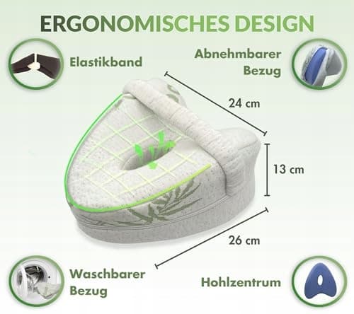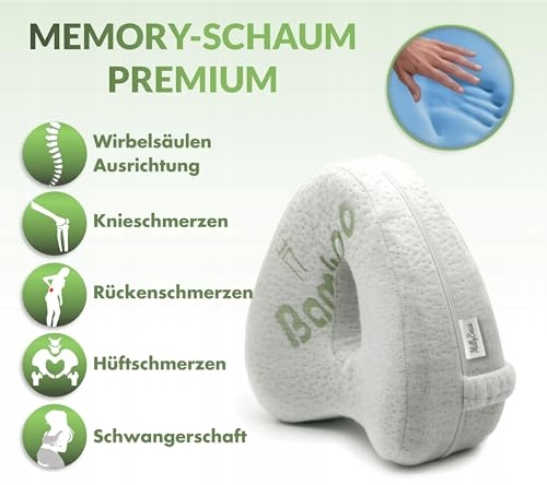 MillyBeas poduszka na kolana do spania na boku - Ortopedyczna poduszka z pianki memory zaprojektowana przez lekarza z odpinanym bambusowym pokrowcem na bóle pleców/bioder/stawów i rwa kulszowa