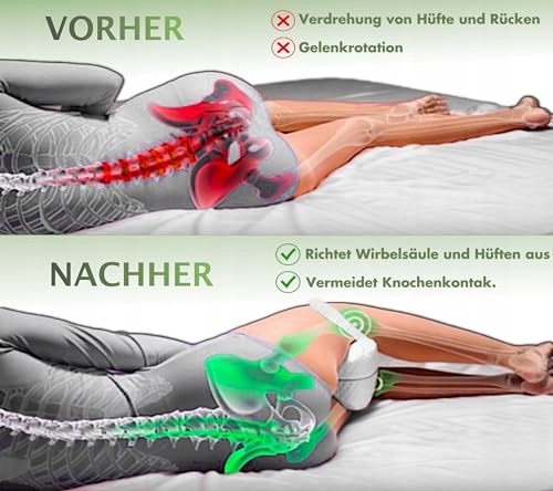 ✅ USTAWIENIE KRĘGOSŁUPA - Popraw swoją pozycję podczas snu, aby wyrównać kręgosłup i biodra, wspieraj kolana i nogi oraz unikaj ucisku stawów i złej postawy podczas spania na boku. Idealne również dla osób wracających do zdrowia po urazach lub operacjach.