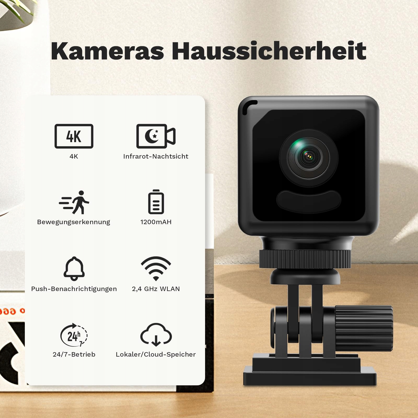 Mini kamera 4K HD: Dzięki ulepszonej technologii pikseli dla rozdzielczości 4K Ultra HD dostarcza realistyczne, szczegółowe obrazy o wysokiej dokładności kolorów. Automatyczna funkcja noktowizora na podczerwień zapewnia wyraźny obraz nawet przy słabym oświetleniu lub całkowitej ciemności, umożliwiając nieprzerwaną kontrolę w dzień i w nocy. Dzięki lekkiej, przenośnej konstrukcji może być używana dyskretnie i niepozornie, nadając się do wielu scenariuszy, dzięki czemu możesz nagrywać bez obaw w dowolnym czasie i miejscu