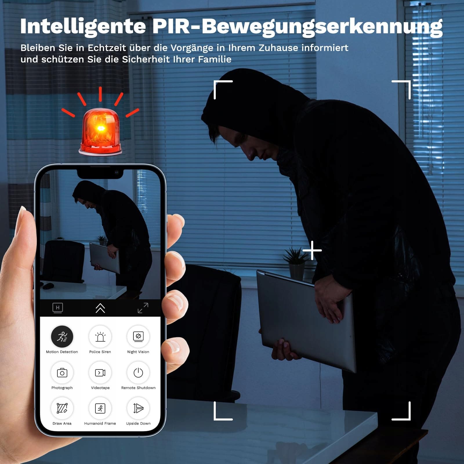 Profesjonalna technologia noktowizora: Technologia czujnika Starlight w połączeniu z noktowizorem IR-LED umożliwia ostre czarno-białe nagrania do 10 m zasięgu. Optymalna czułość na światło zapewnia użyteczne detale obrazu nawet przy minimalnym oświetleniu