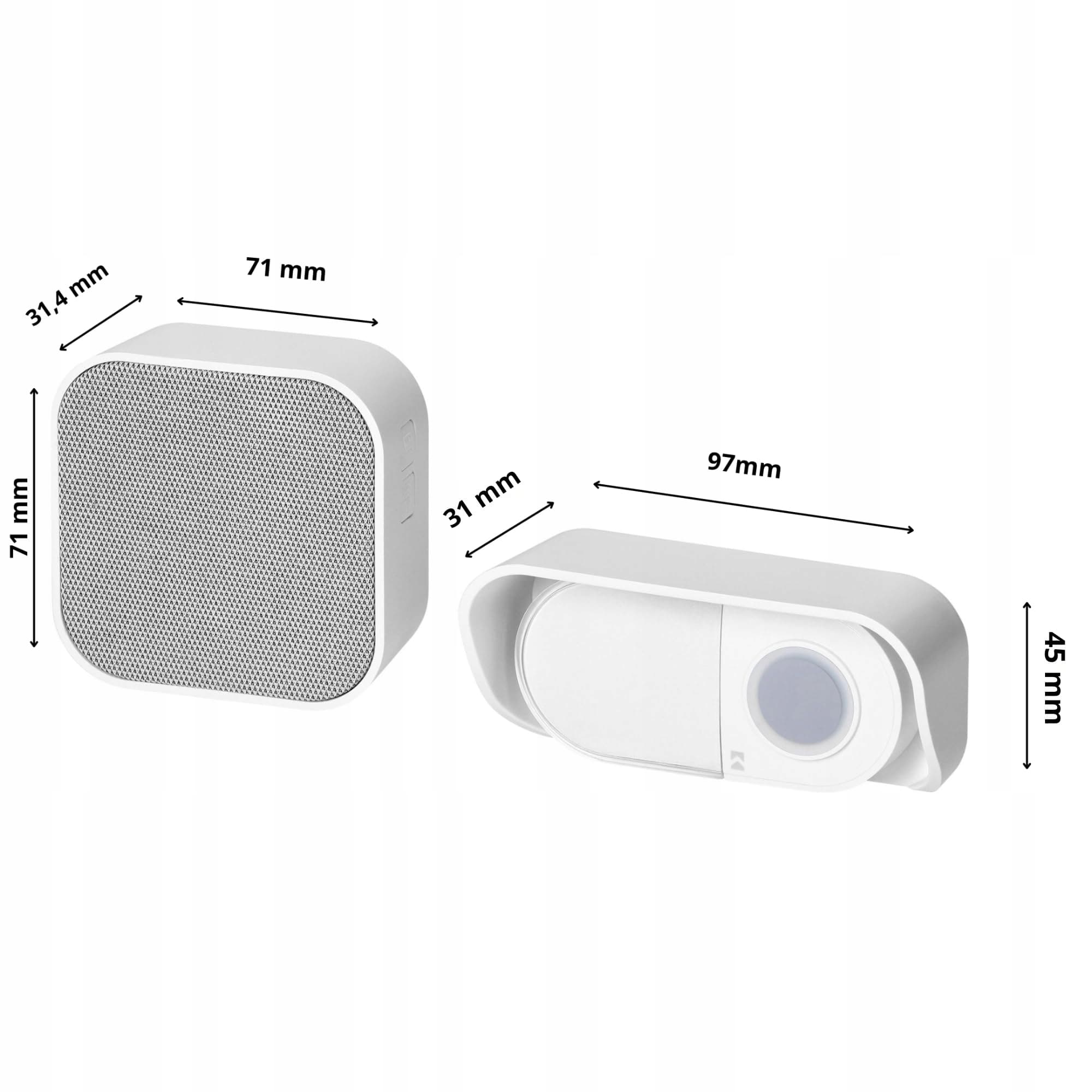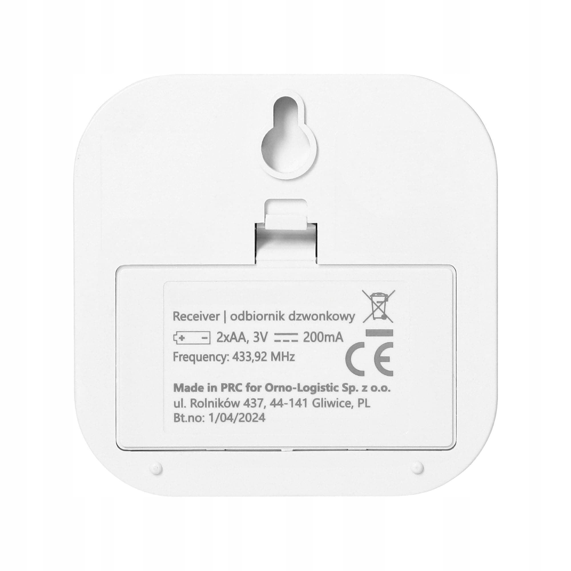 Odporność na warunki atmosferyczne IP44: Dzwonek posiada ochronę nadajnika na poziomie IP44, co oznacza, że jest odporny na deszcz i silny wiatr.
