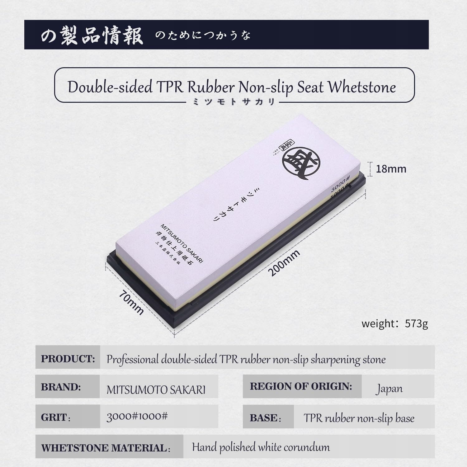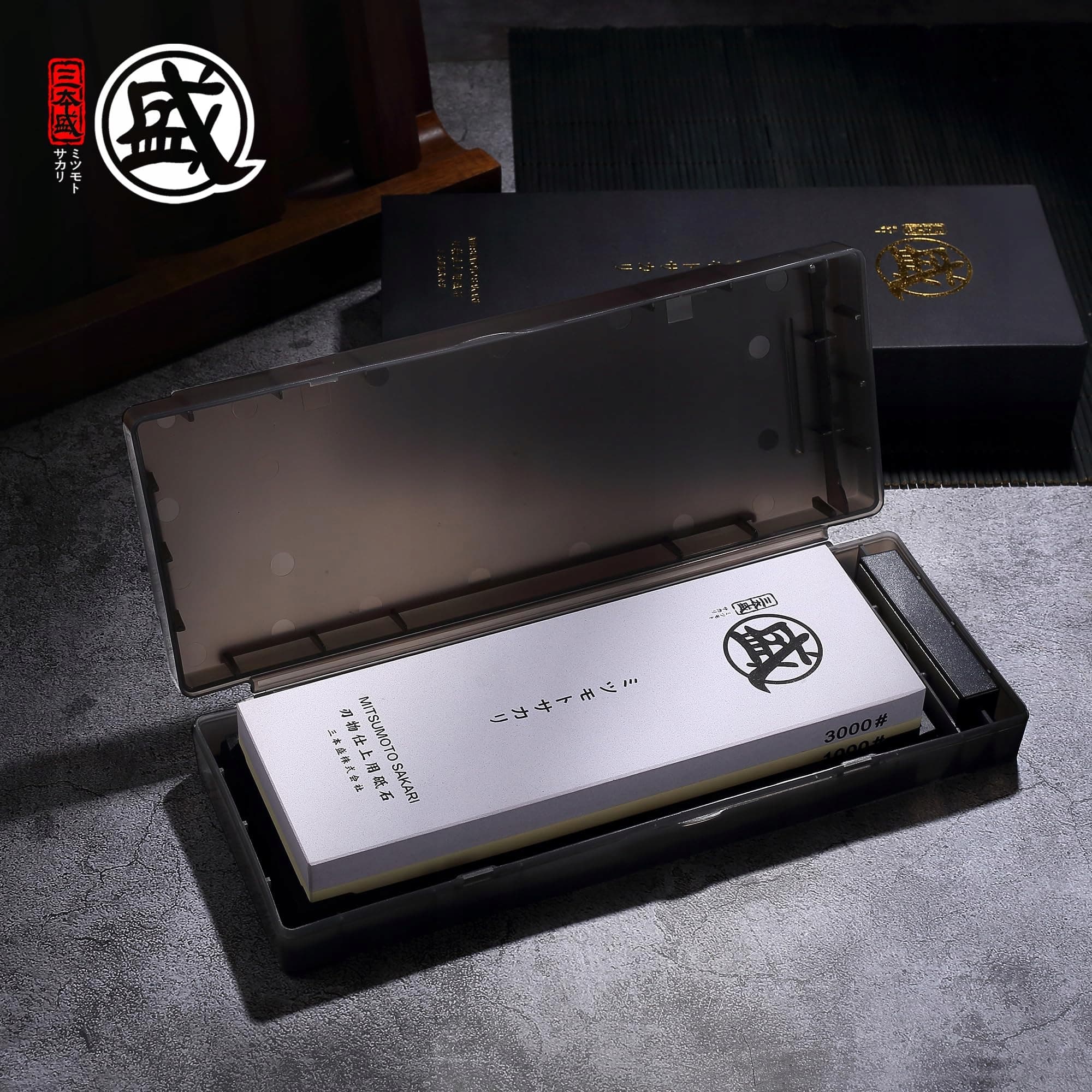 MITSUMOTO SAKARI Japonia Kamień do ostrzenia, 1000/3000 Grit, Profesjonalny kamień do ostrzenia z antypoślizgową podstawą z gumy TPR