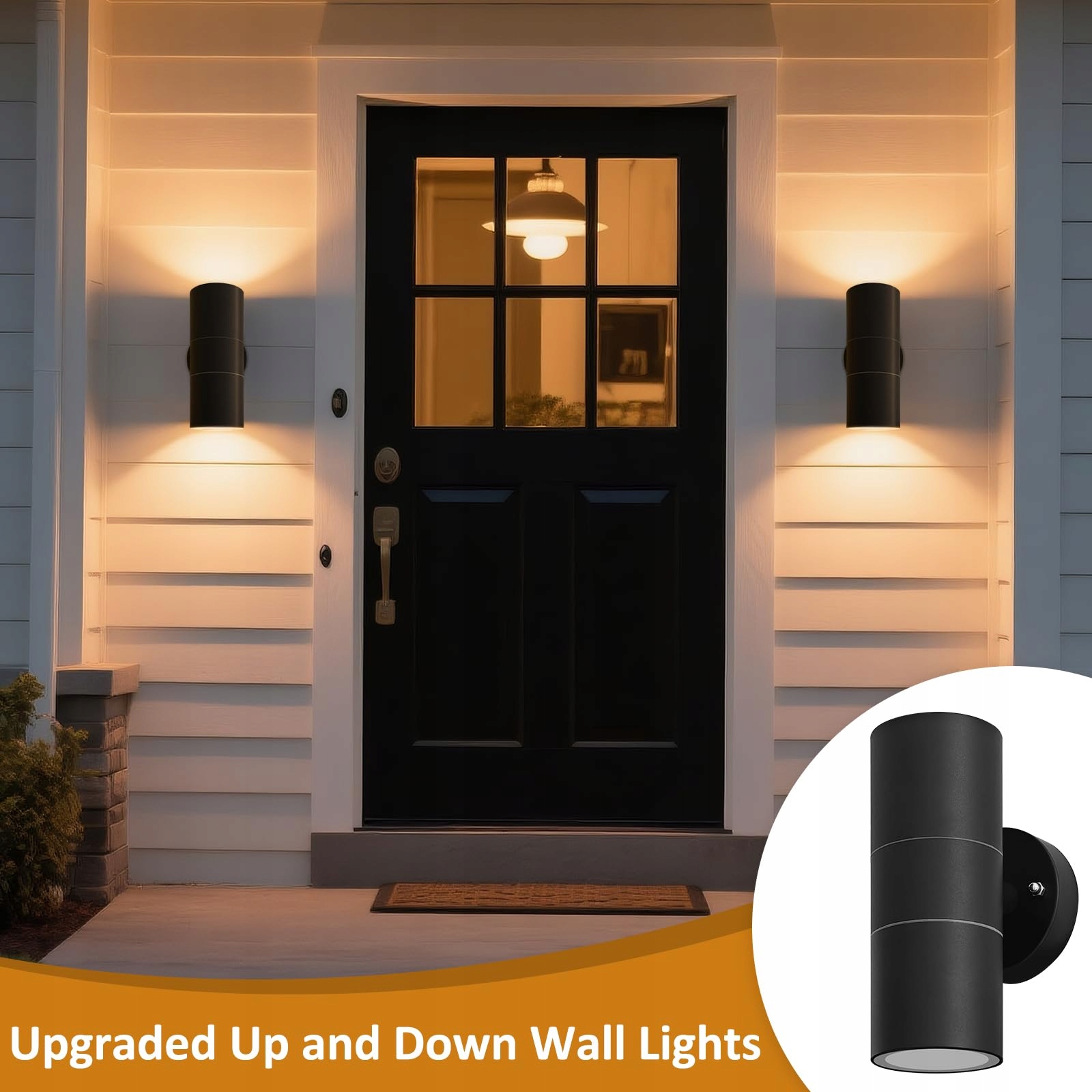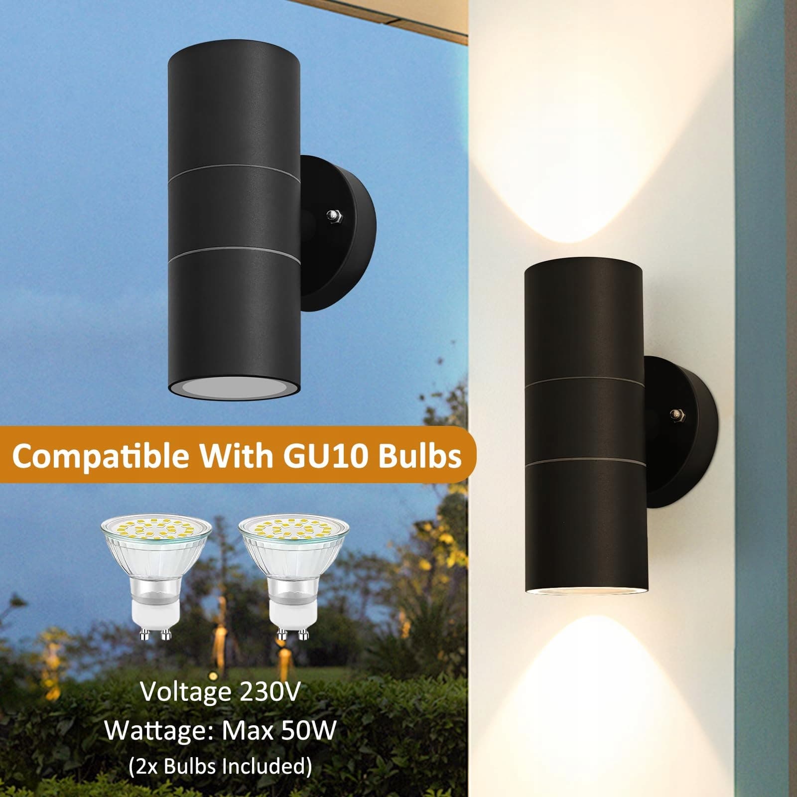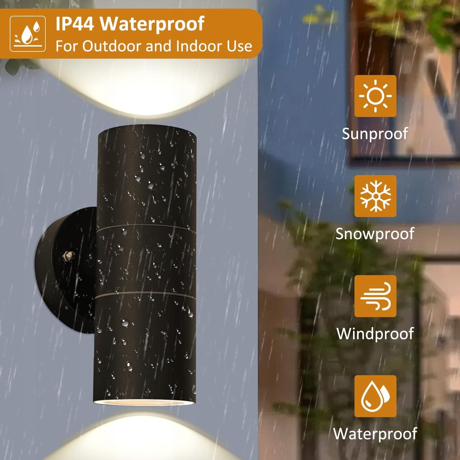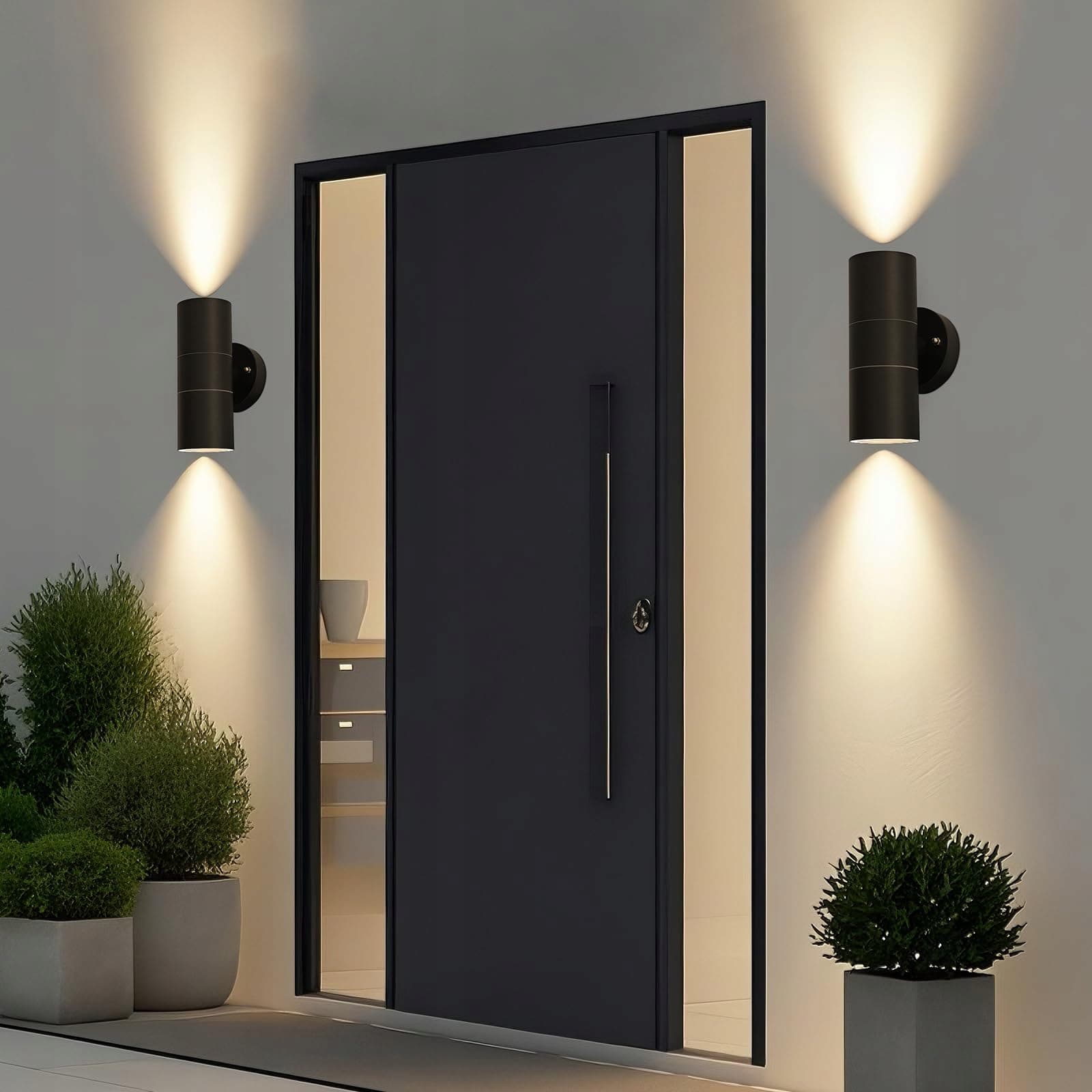 💡 Stylowa lampa Up Down na zewnątrz – W zestawie źródła światła: Te nowoczesne kinkiety ścienne Up Down na zewnątrz są wyposażone w 2 x 5W lampy GU10 3000K ciepłej bieli. Emitują delikatne światło w górę i w dół – idealne do eleganckiego oświetlenia murów ogrodowych, wejść lub tarasów z efektownym oświetleniem downlight na zewnątrz.