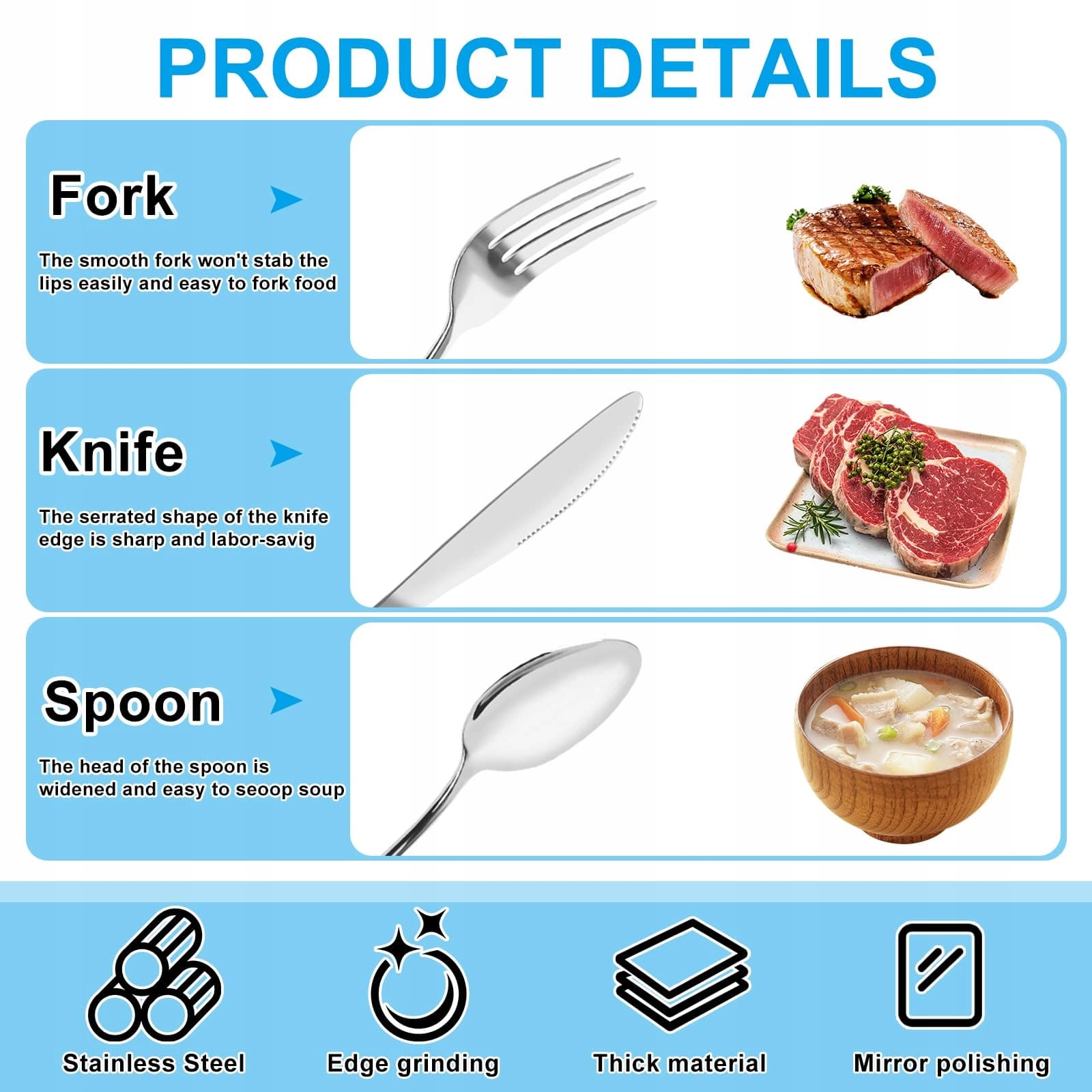Łatwy do czyszczenia i nadający się do zmywarki: sztućce ze stali nierdzewnej są łatwiejsze do czyszczenia niż plastik i można je myć bezpośrednio w wodzie lub w zmywarce