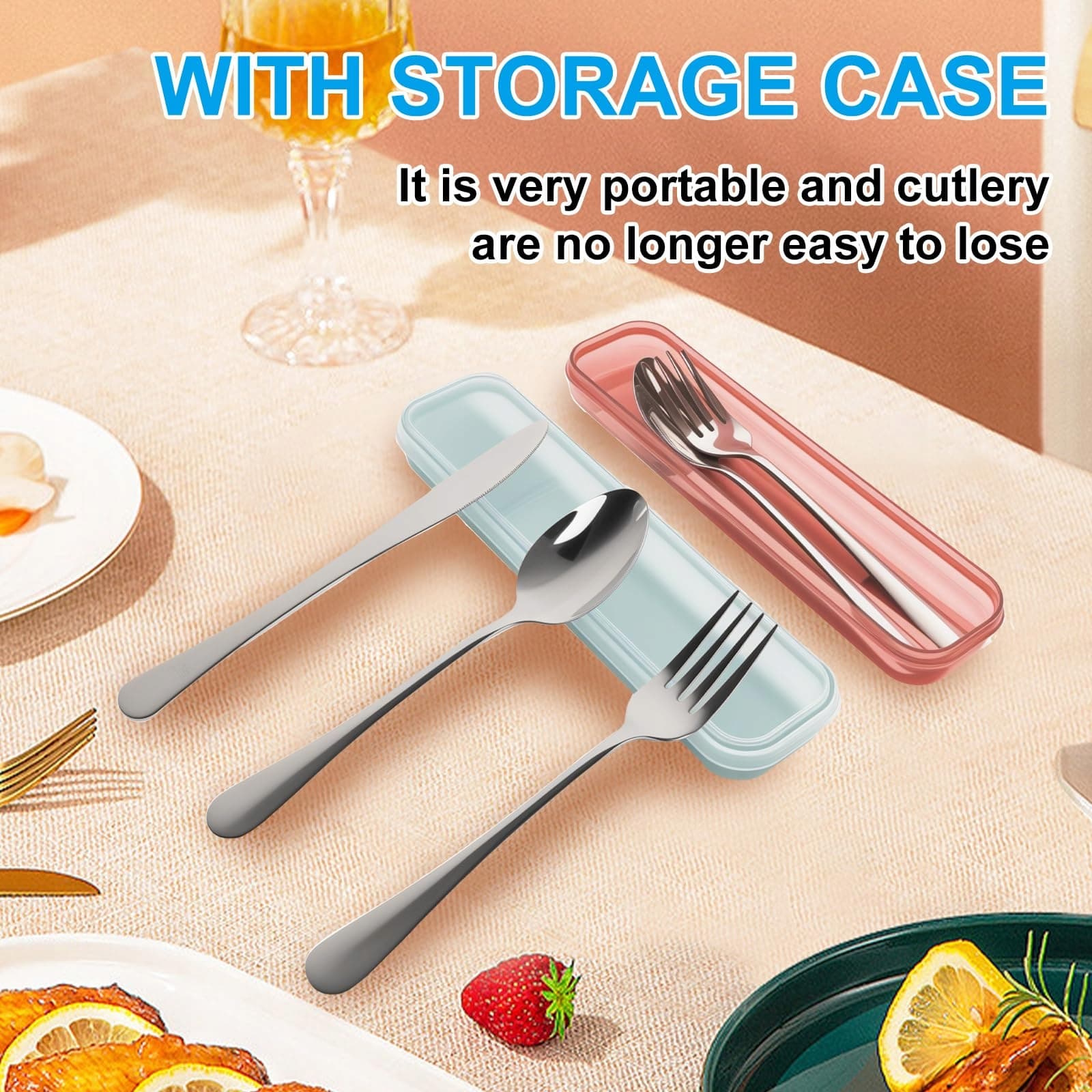 Materiał zestawu sztućców: ten zestaw podróżny wykonany jest z wysokiej jakości, pogrubionej stali nierdzewnej z całkowicie wypolerowanymi, gładkimi krawędziami. Jest trwały i wielokrotnego użytku, dostarczany w kompaktowym i lekkim etui do przechowywania