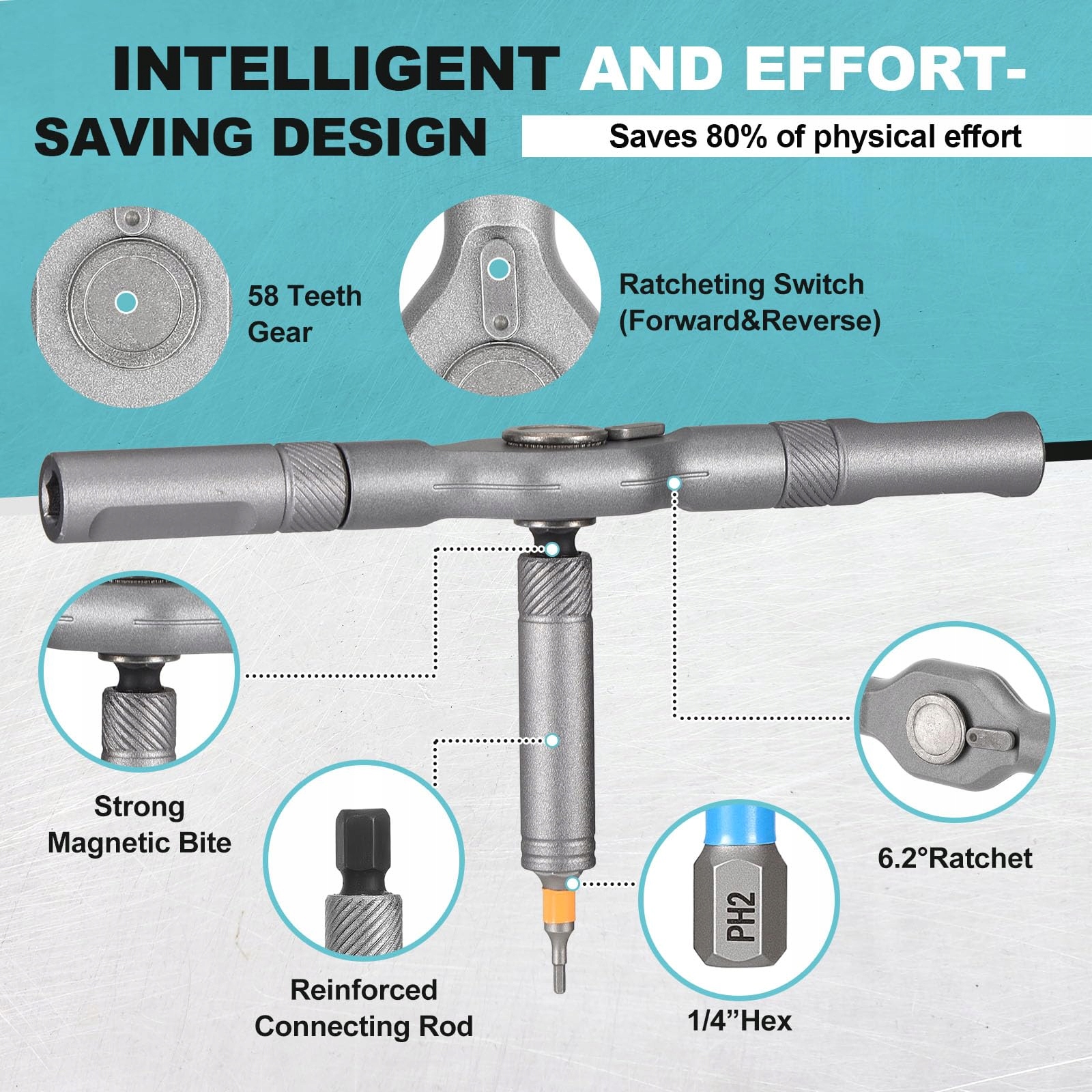 【Wygodne w użyciu】: Kompaktowy i praktyczny zestaw wkrętaków precyzyjnych ma odłączalną strukturę i regulowaną długość trzonka narzędzia, co ułatwia dostęp do ciasnych miejsc. Można go elastycznie konfigurować w wąskich przestrzeniach i umożliwia płynny obrót jedną ręką, co ułatwia dokręcanie lub luzowanie śrub. Ponadto zestaw wkrętaków dostarczany jest z kompaktową i przenośną walizką do przechowywania, dzięki czemu można go zabrać ze sobą w każdej chwili na naprawy awaryjne w domu lub w podróży.