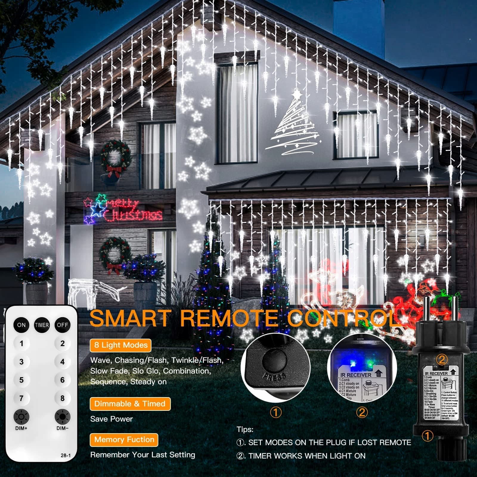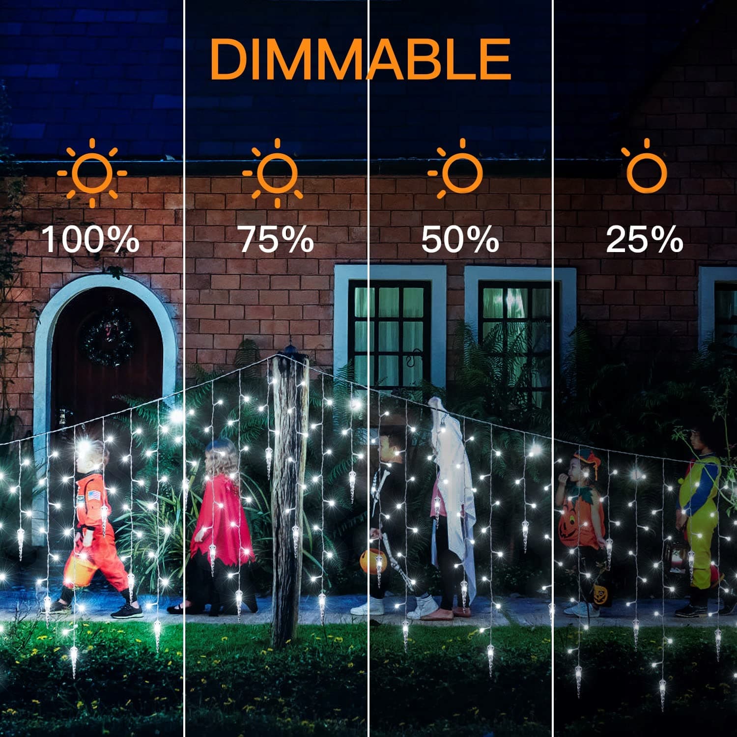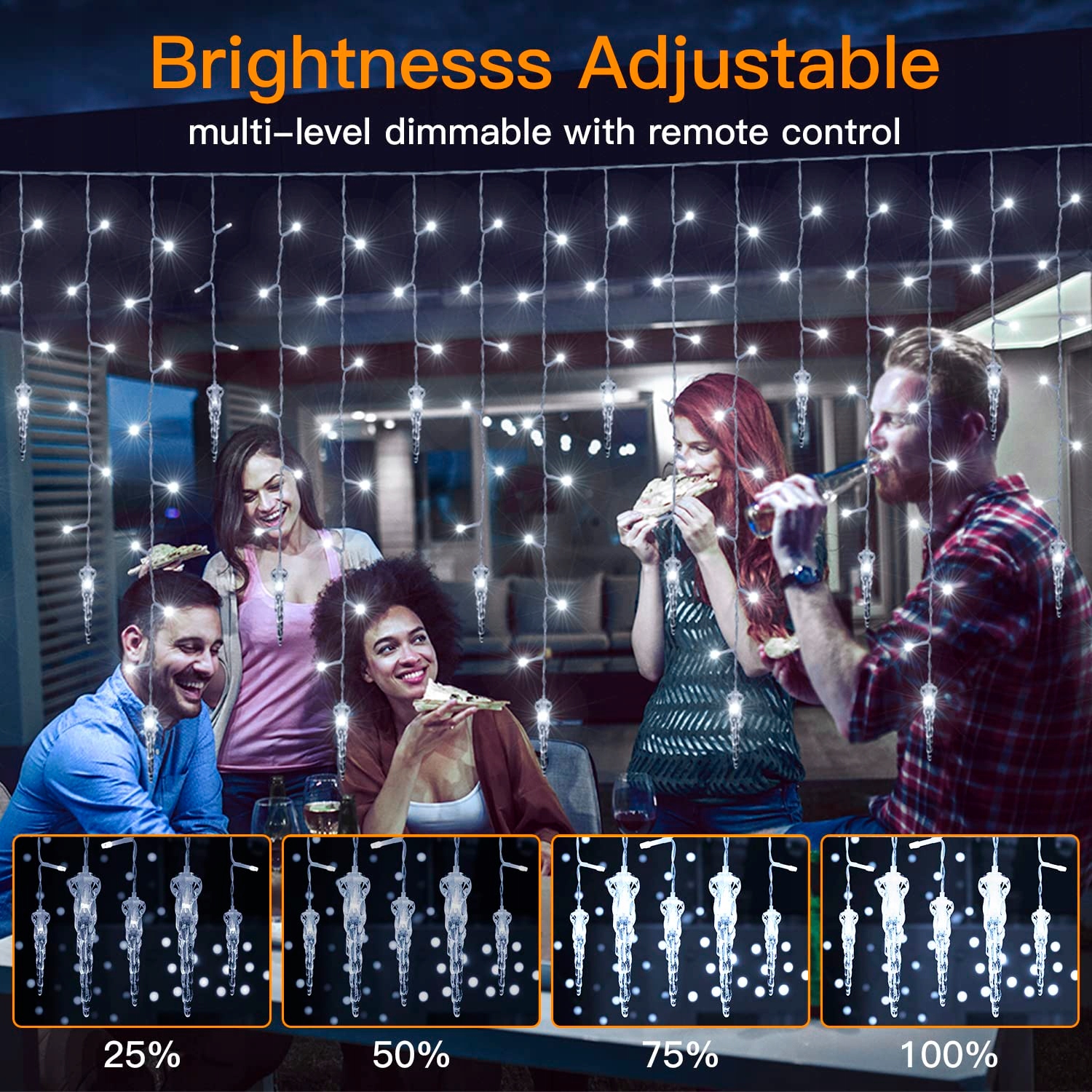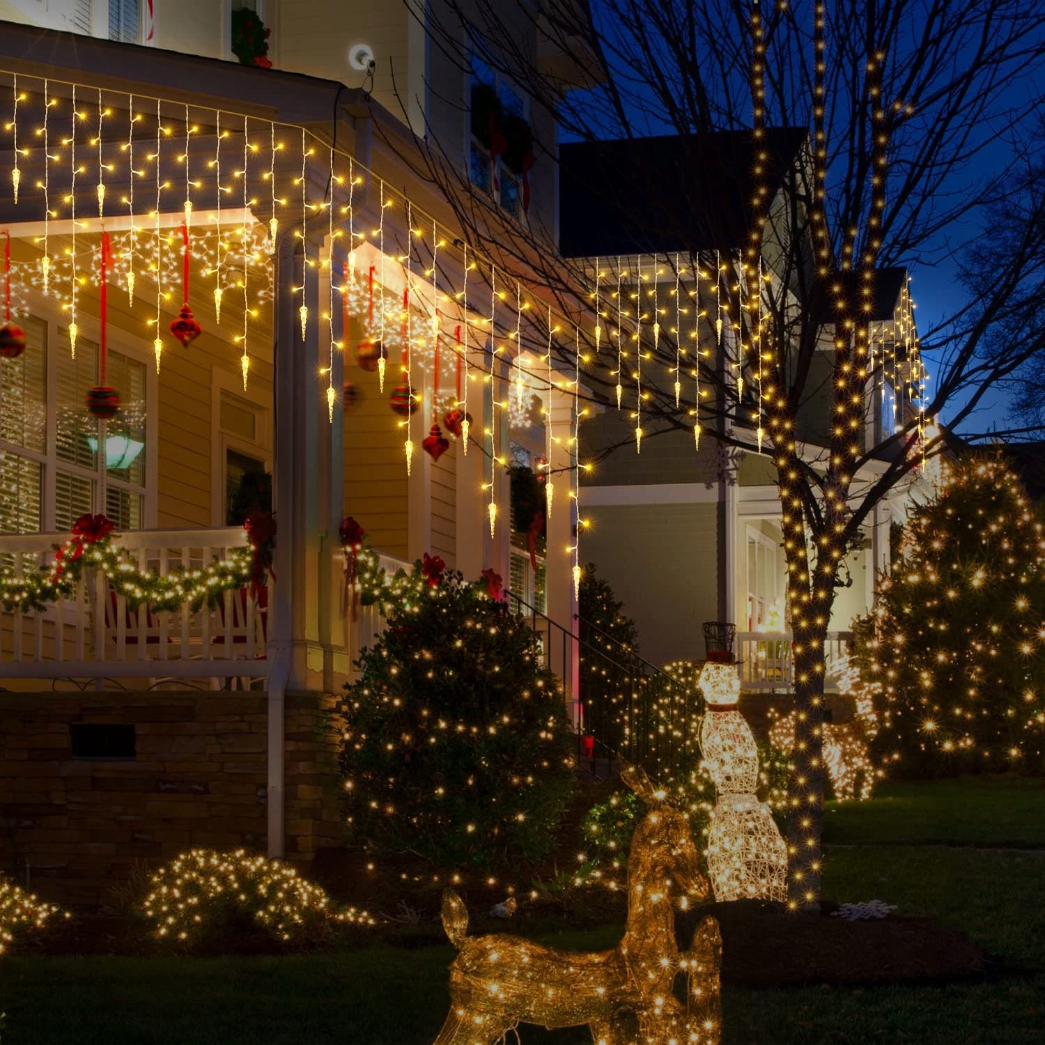 [WSZECHSTRONNE OŚWIETLENIE DEKORACYJNE] Dzięki różnorodnym efektom świetlnym te lampki świetnie nadają się do dekoracji okapów, poręczy, schodów, tarasów, drzwi, okien i drzew. Różnej długości paski świetlne i sopelki lodu na końcu jasno świecą w świecie śniegu i lodu, nadając ciepłą atmosferę świątecznej nocy.