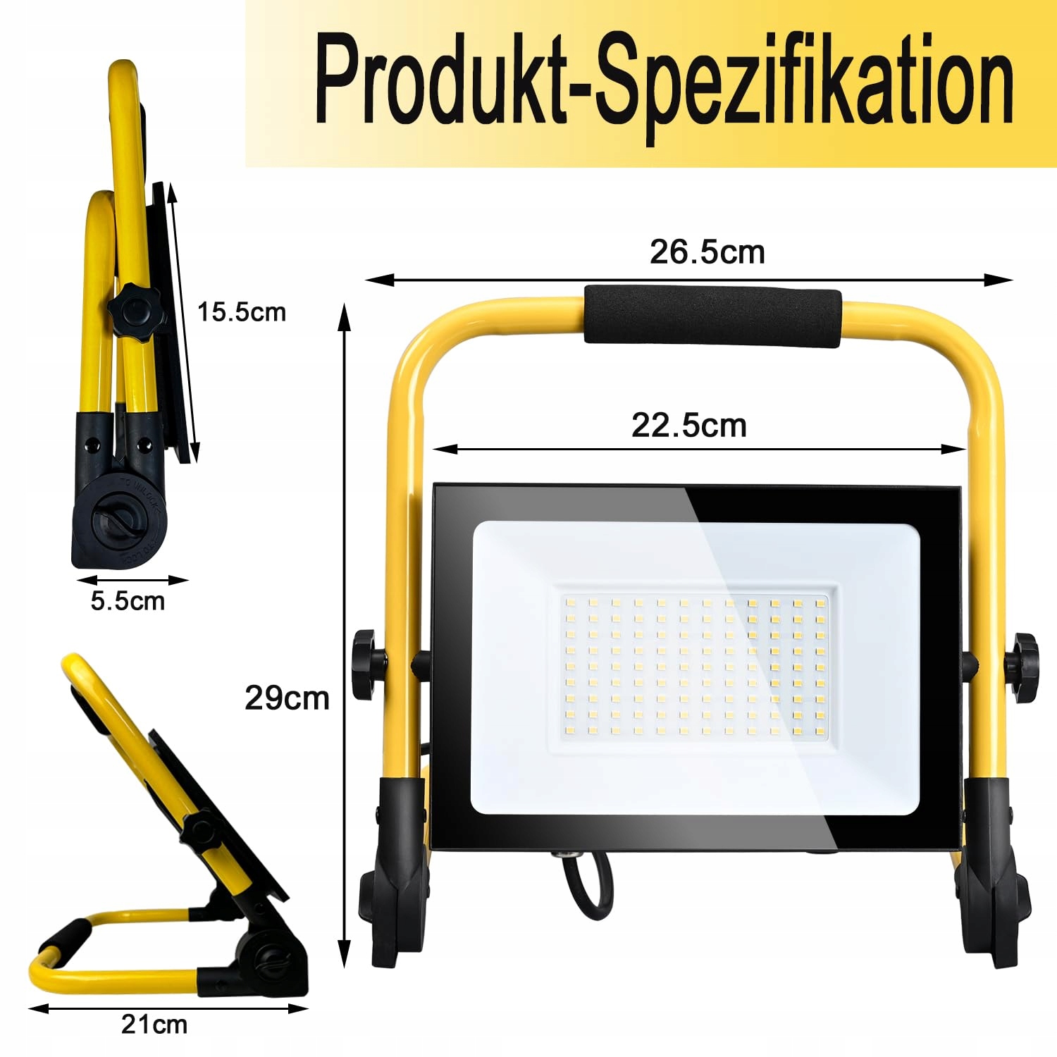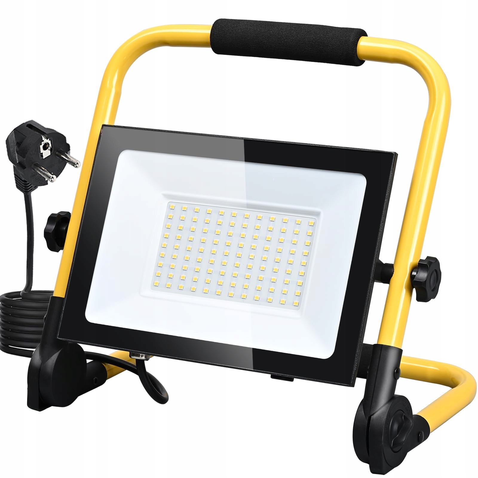 MOLVCE Led Baustrahler 100W 3000K 8500LM Ciepły biały, Led Lampa robocza z wtyczką, IP66 Wodoodporna lampa budowlana ze statywem i 3 metrowym kablem do budowy, garażu, warsztatu, boiska sportowego
