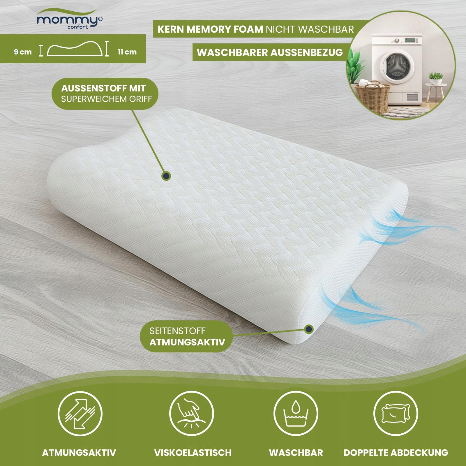 🧼 Pokrowiec Aloe Vera z zamkiem błyskawicznym – zdejmowany i zmywalny: Zewnętrzna powłoka tej poduszki wykonana jest z miękkiej, elastycznej tkaniny z dodatkiem Aloe Vera. Jest przyjazna dla skóry, oddychająca i łatwa do zdjęcia oraz wyprania dzięki zamkowi błyskawicznemu. Wewnątrz znajduje się druga warstwa ochronna dla dodatkowej higieny. Viscoelastyczne wnętrze pozostaje stabilne i zapewnia trwały komfort – poduszka podpierająca, która łączy jakość snu z łatwością pielęgnacji.