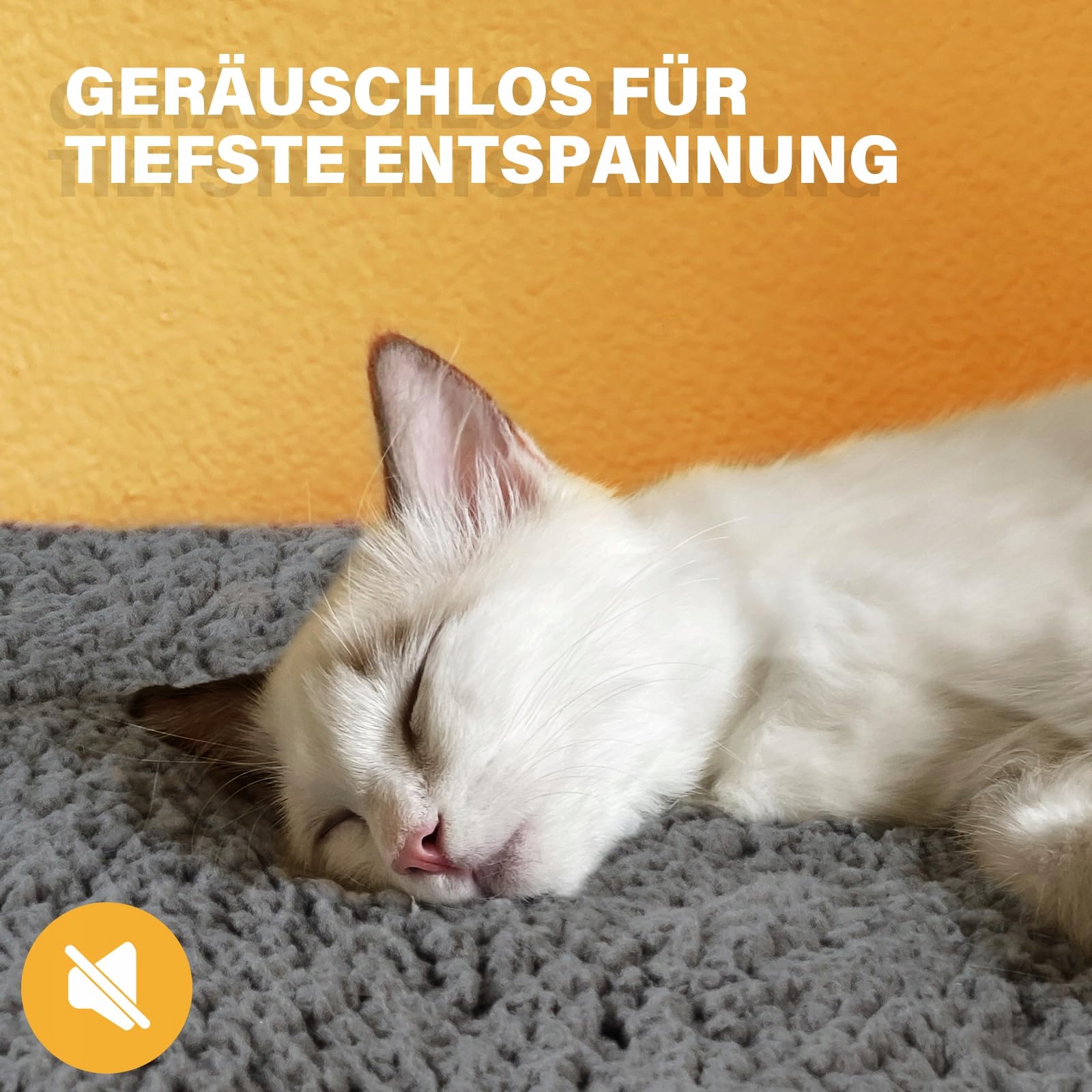 BEZSZELESTNY DLA NAJGŁĘBSZEGO RELAKSU – Wykonany z bezszelestnych materiałów koc grzewczy dla kota zapewnia, że Twoje zwierzęta mogą odpoczywać bez zakłóceń. Jego luksusowa i puszysta tkanina tworzy miękką powierzchnię, która sprzyja głębokiemu snu. Zapewnij swoim zwierzętom komfort, którego potrzebują i który kochają!