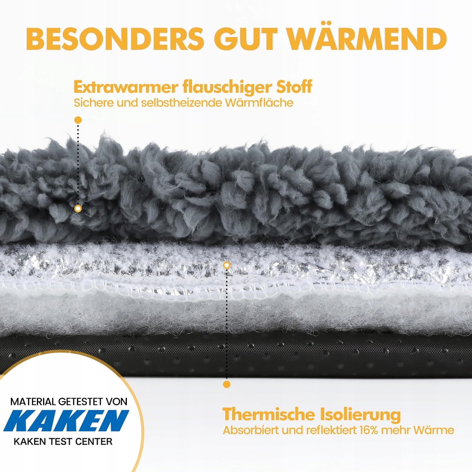 WYSOKIEJ JAKOŚCI WYPEŁNIENIE WEWNĘTRZNE – Zanurz swojego zwierzaka w przytulnym uścisku naszego samonagrzewającego się koca dla kota. Wypełnienie wewnętrzne z wysokiej jakości włókniny PP zapewnia miękki i wspierający efekt poduszki. Również rozprowadza ciepło w poduszce, zapewniając równomierne, kojące ciepło.
