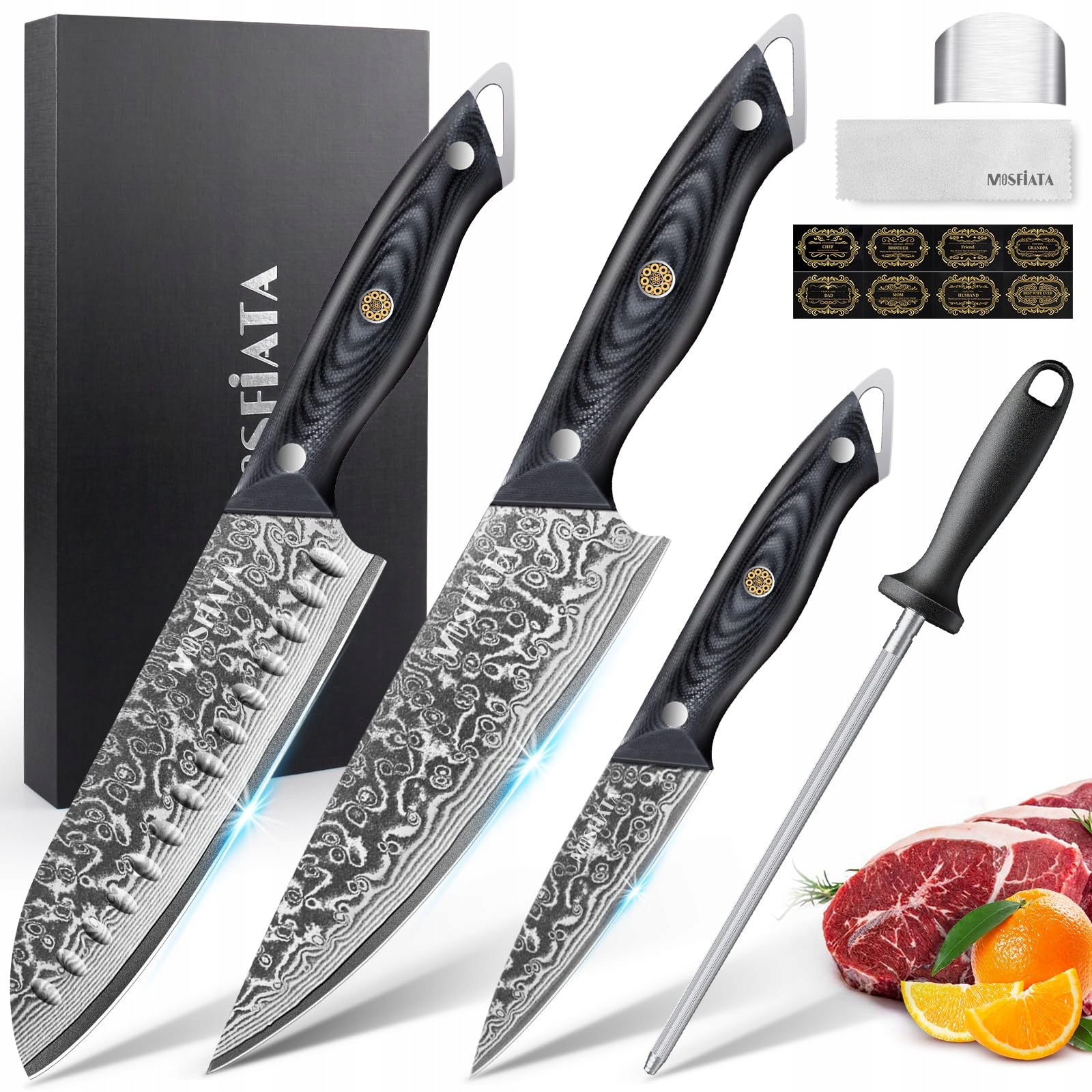 MOSFIATA Zestaw Noży Damast 3 szt VG10 Stal Damasceńska Prezent | Premium Supply