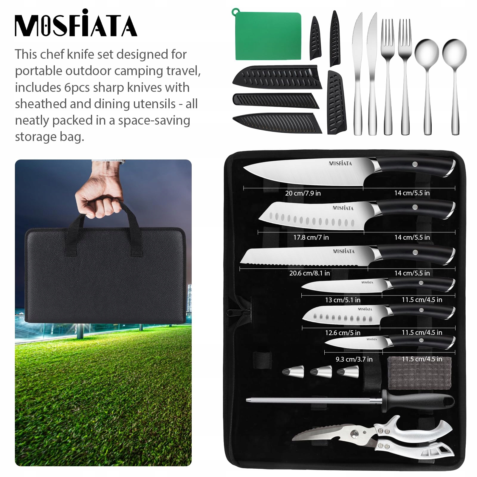 MOSFIATA Zestaw Noży Kuchennych 19 Częściowy Stalowy Z Torbą Outdoor