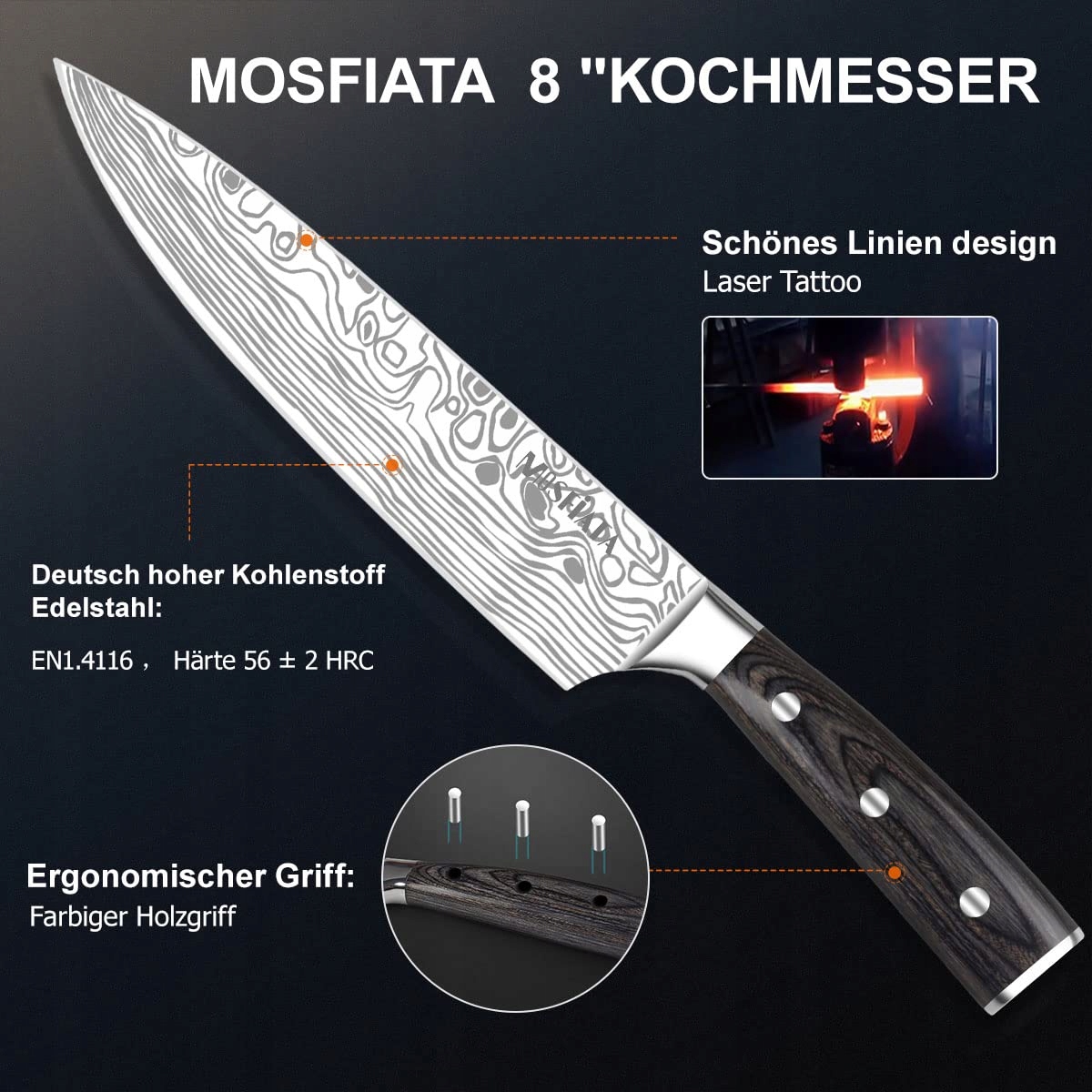 MOSFIATA Zestaw Noży Kuchennych Węglowa Stal Nierdzewna Ochrona Palców