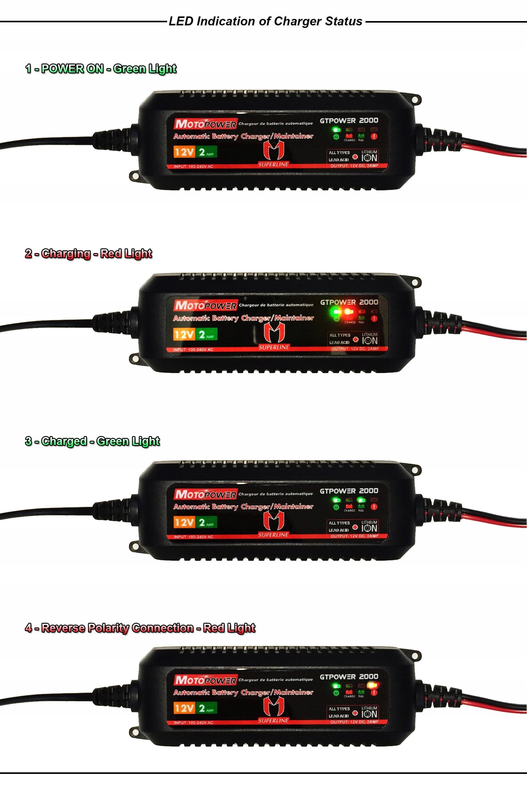 MOTOPOWER 12V 2Amp Automatyczna ładowarka do akumulatorów kwasowo-ołowiowych i litowo-jonowych