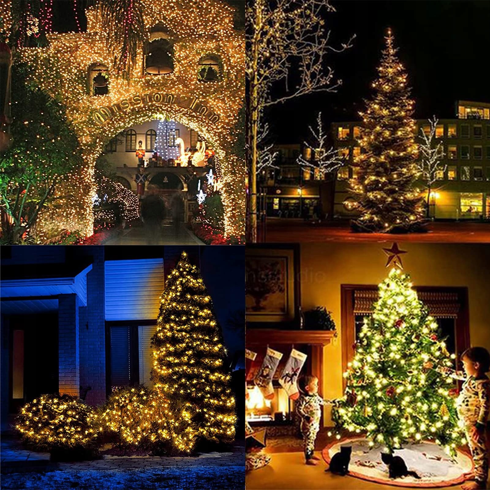 Moxled Lichterkette Weihnachtsbaum - 100M 800 LED Ciepła Biała Lichterkette Zewnętrzna Z Timerem Funkcją Pamięci, Zielony Kabel, Wodoodporna 8 Trybów Oświetlenia Świątecznego do Ogrodu Dekoracji Świątecznej