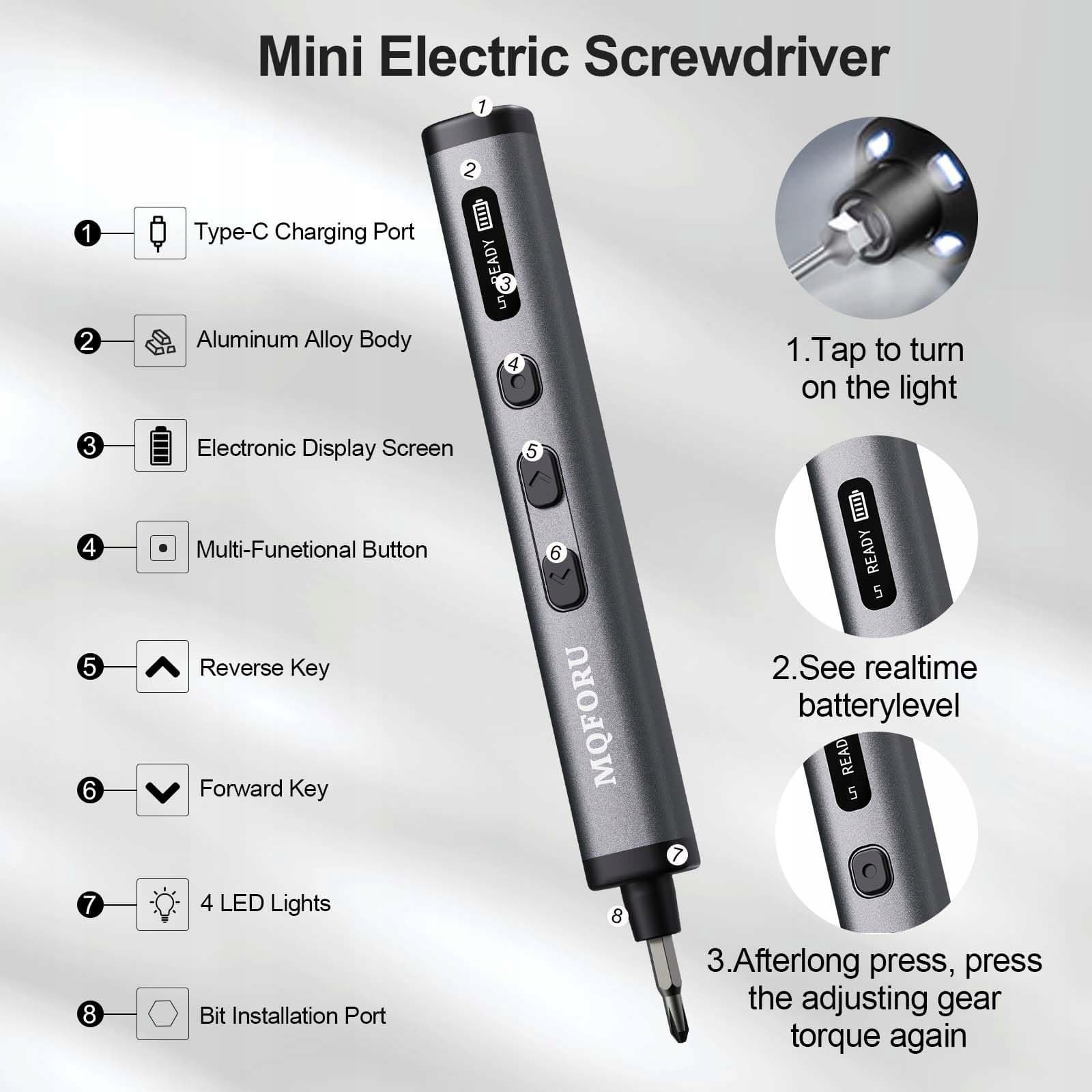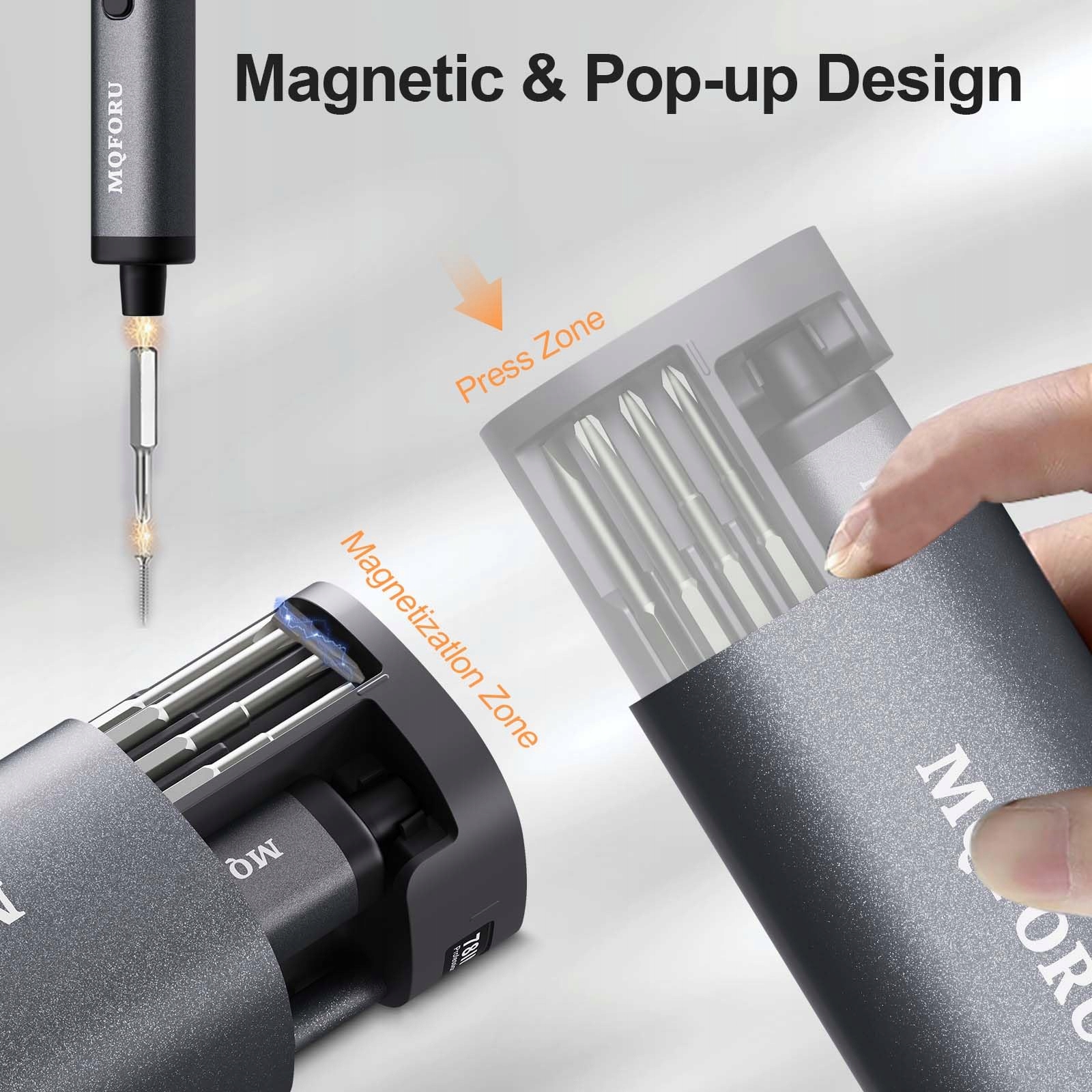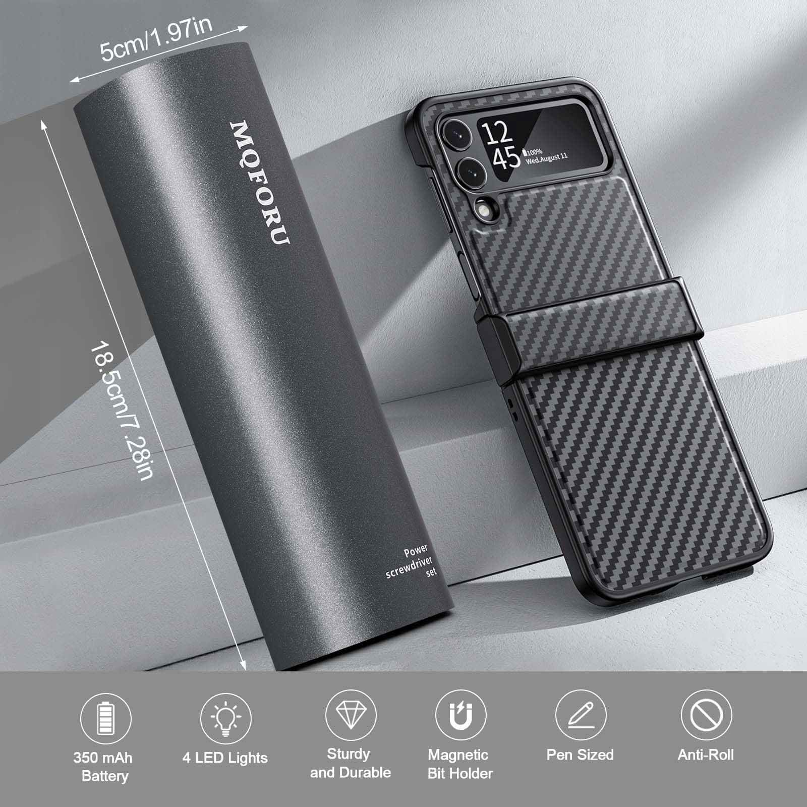 MQFORU Mini-elektryczny zestaw wkrętaków, 78 w 1 precyzyjny wkrętak elektryczny z 72 magnetycznymi bitami, 5 ustawieniami momentu obrotowego, 4 diodami LED, do precyzyjnych prac telefonów, zegarków, kamer