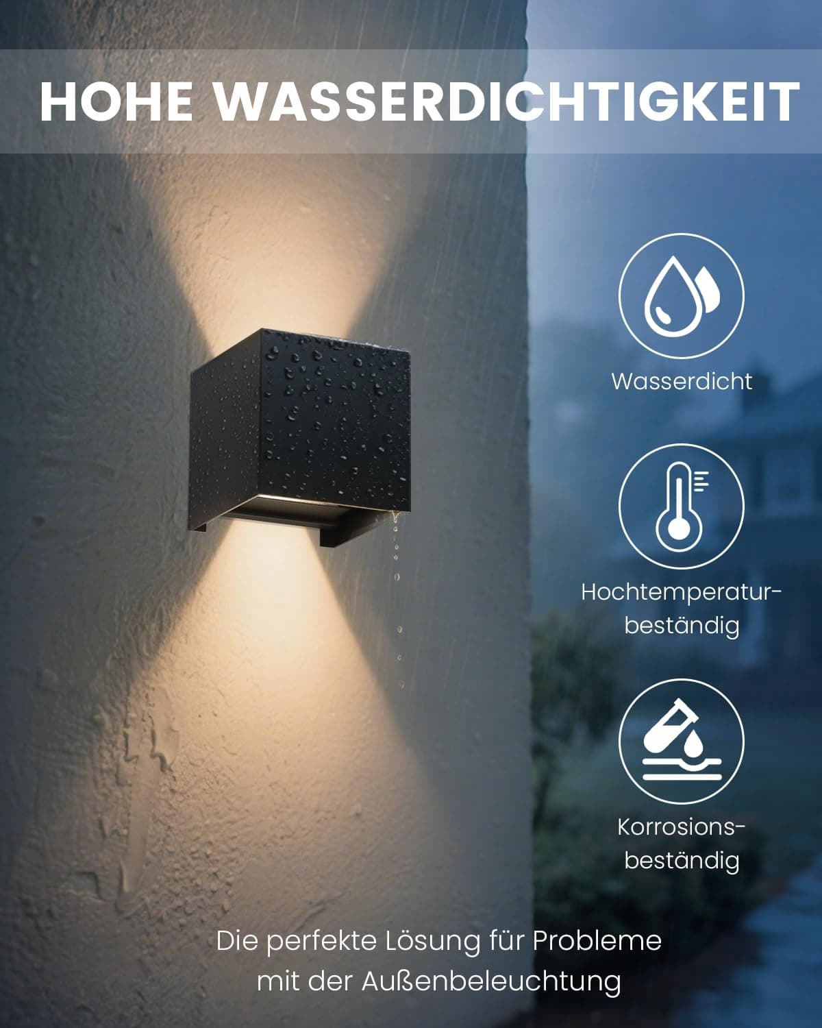 【Trwała żywotność 50 000 godzin dla lamp ściennych na zewnątrz】Wysokiej jakości dioda LED o żywotności 50 000 godzin (około 10 lat). Połączona z obudową z odlewu aluminiowego – stabilna i trwała do wieloletniego użytkowania jako lampa ścienna