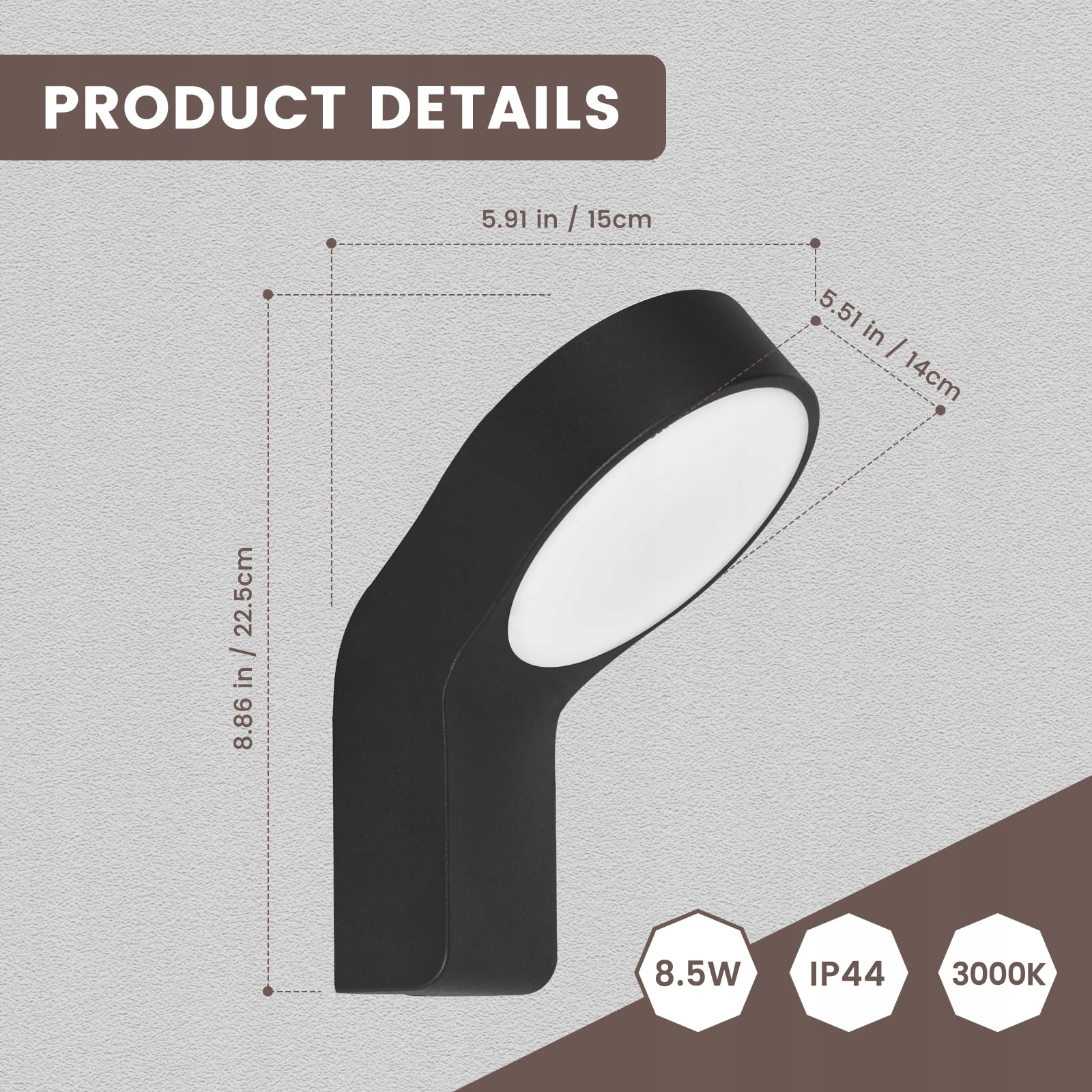 【Wysokiej jakości materiały dla trwałości】Korpus lampy wykonany z odlewu aluminium zapewnia wytrzymałość i odporność na korozję, podczas gdy mlecznobiały, matowy plastikowy klosz rozprasza delikatne, nieoślepiające światło. To połączenie sprawia, że lampa ścienna zewnętrzna jest nie tylko odporna na warunki atmosferyczne, ale także estetyczna do stałego użytku na zewnątrz.