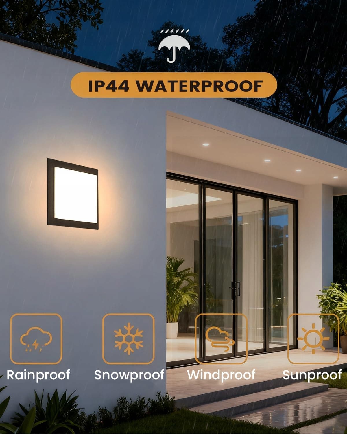 【Ochrona IP44 dla niezawodnego użytkowania na zewnątrz】Lampa zewnętrzna ścienna posiada klasę ochrony IP44, co czyni ją odporną na zachlapania, kurz i lekką wilgoć – nawet w deszczowe dni lub wilgotnym otoczeniu (takim jak altany czy szopy) pozostaje bezpieczna i funkcjonalna.