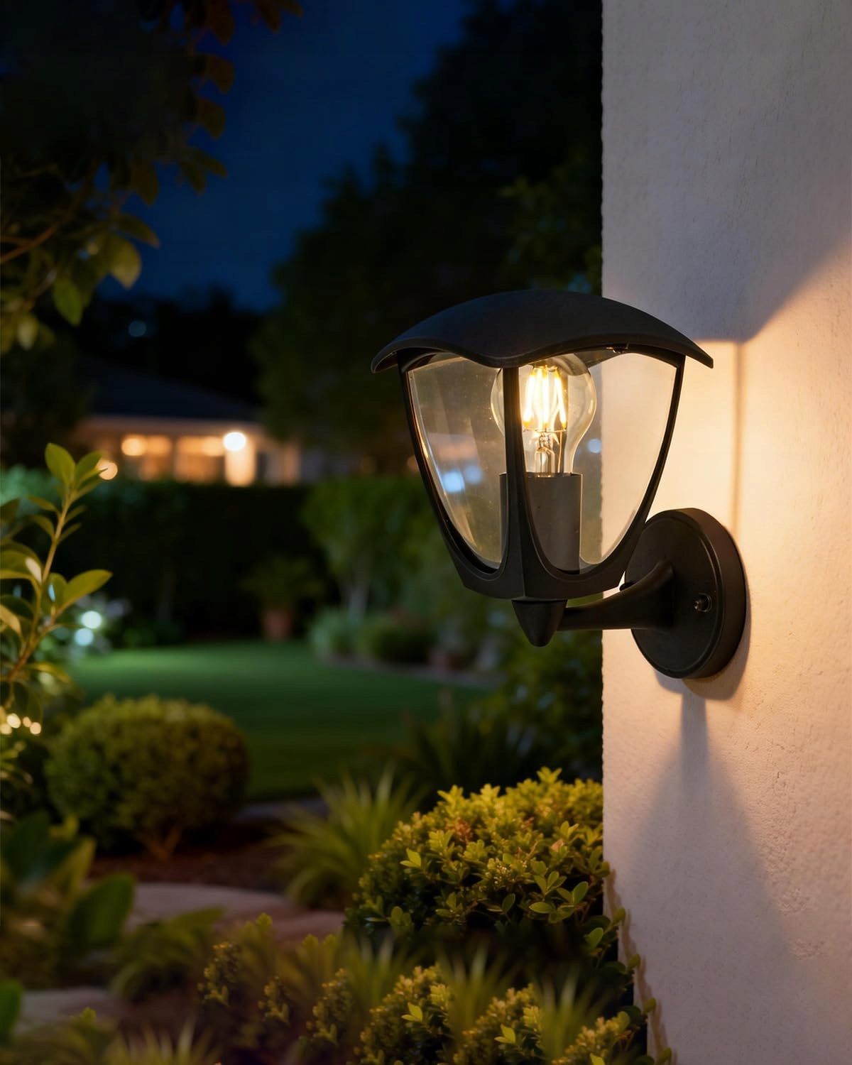【KOMPAKTOWY NOWOCZESNY DESIGN OSZCZĘDZAJĄCY MIEJSCE】Kompaktowy profil (17x23,5x20 cm) idealnie pasuje do wąskich ścian, nie dominując architektury. Gładka czarna powierzchnia + przezroczyste szkło tworzą efektowne wzory świetlne – idealne do wejść, balkonów, pergoli lub nowoczesnych elewacji.