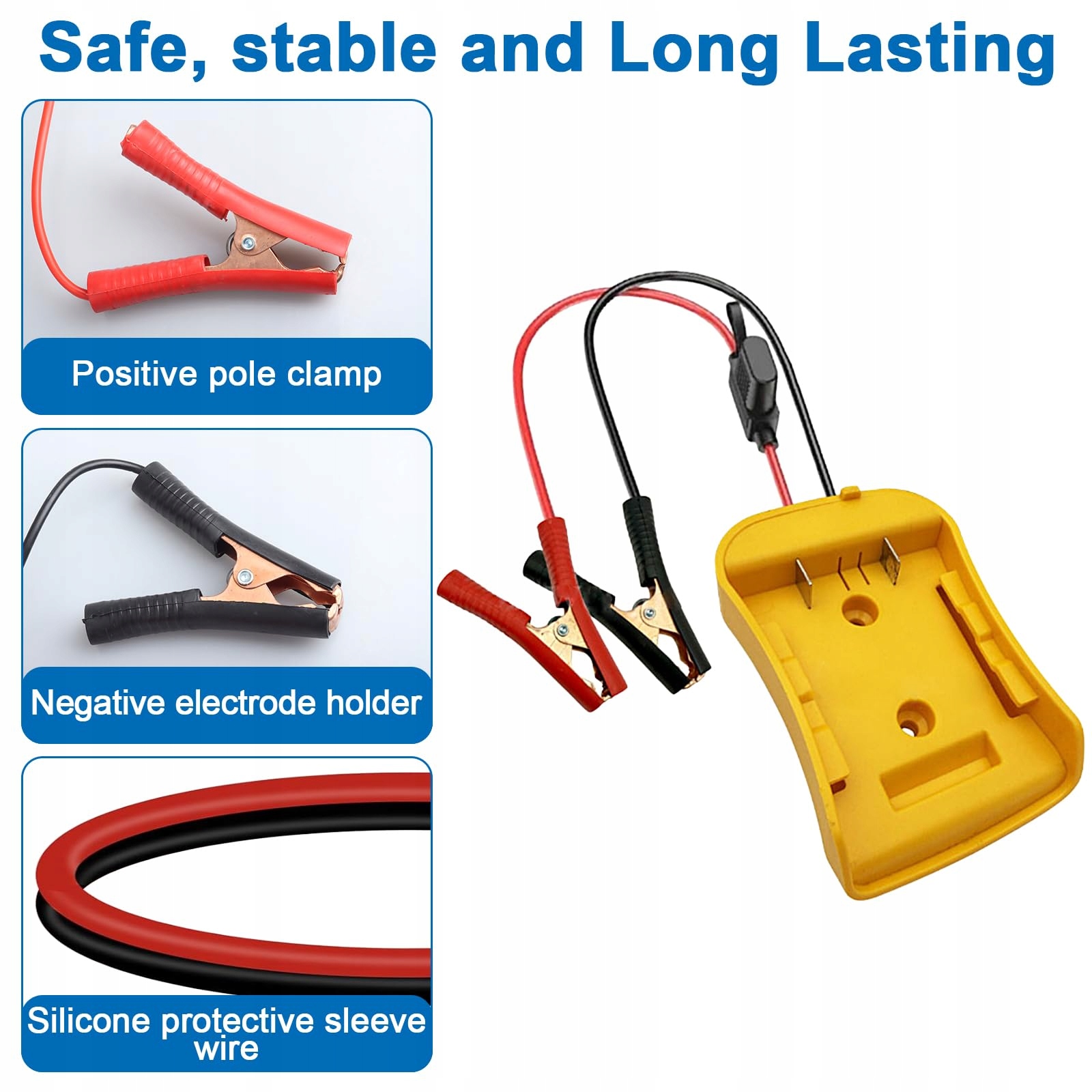 【Wysoka jakość】Nasz adapter wykonany jest z wytrzymałego tworzywa ABS i wykorzystuje wysokiej jakości, cynowane rdzenie miedzianych przewodów. Charakteryzuje się doskonałą przewodnością i elastycznością. Izolowane uchwyty kabla rozruchowego skutecznie zapobiegają porażeniom prądem i zapewniają bezpieczeństwo użytkownika.