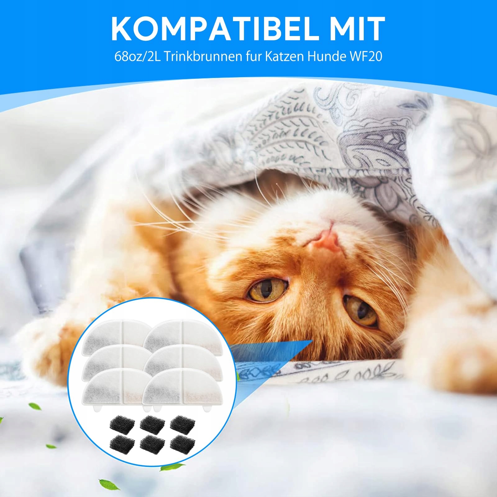 Kompatybilność: Ten filtr do fontanny dla kotów jest kompatybilny tylko z fontanną do picia 2L WF20 CF20, proszę zwrócić uwagę na rozmiar i kształt filtra przed złożeniem zamówienia