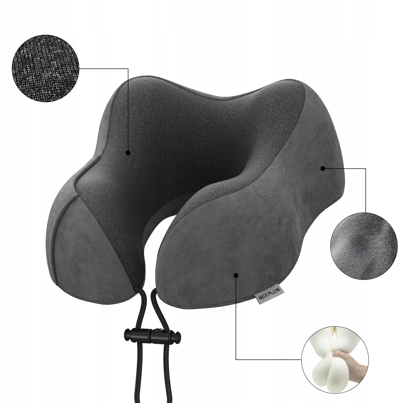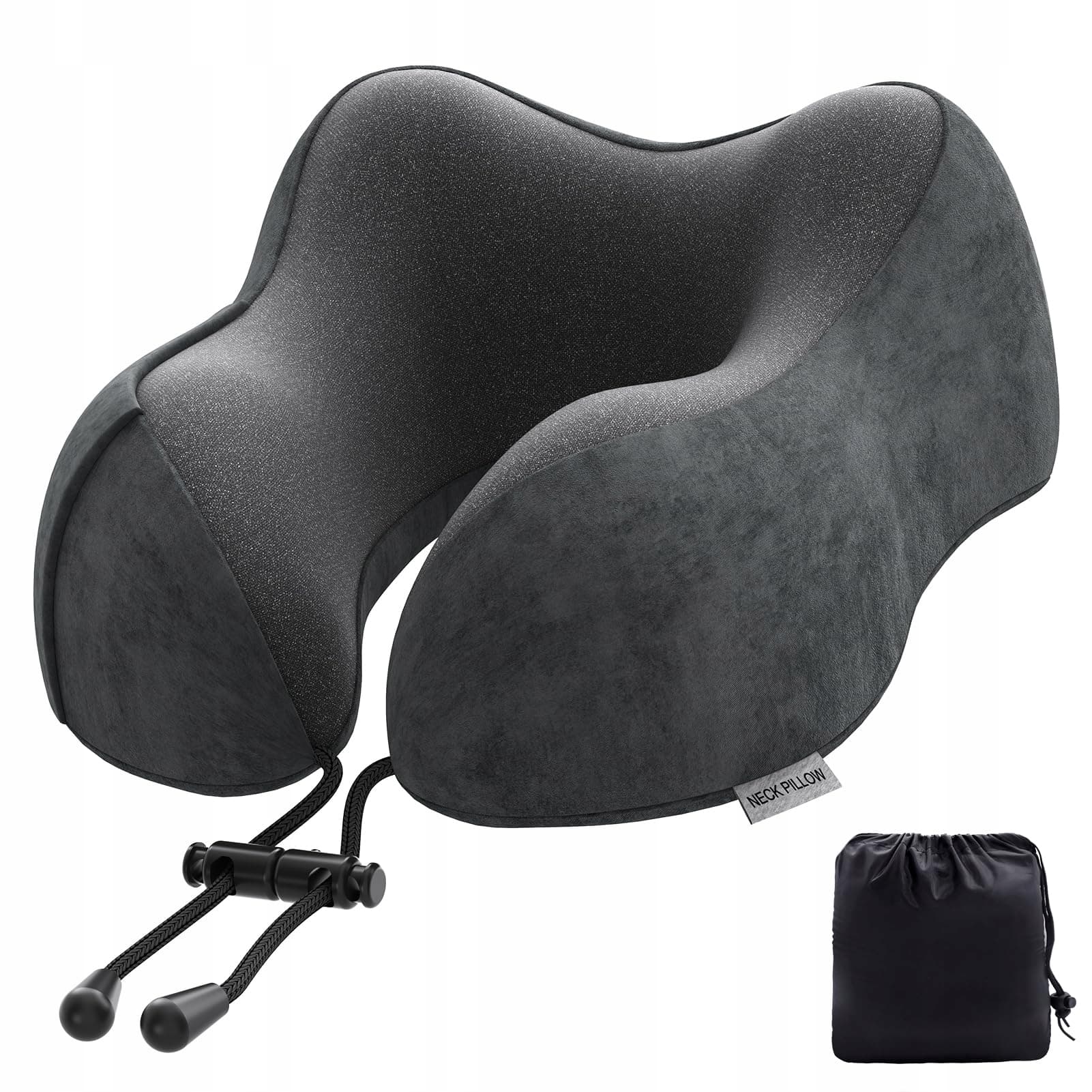 Poduszka na szyję do samolotu, poduszka podróżna do samochodu z pianki memory z aksamitnym pokryciem, poduszka na szyję dla dorosłych do podróży, kempingu, biura i domu (ciemnoszara)